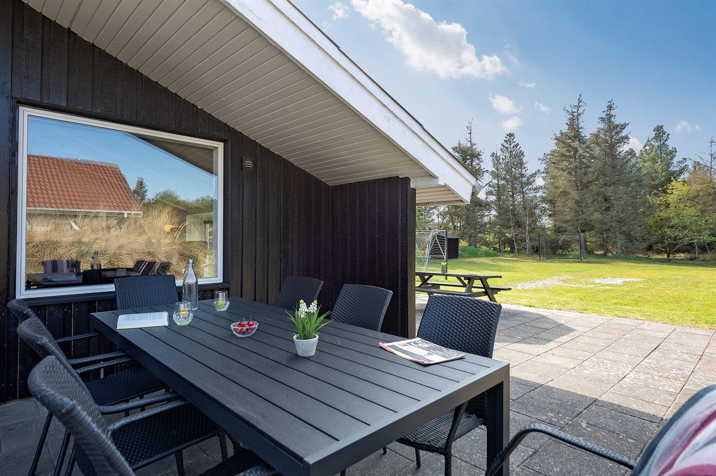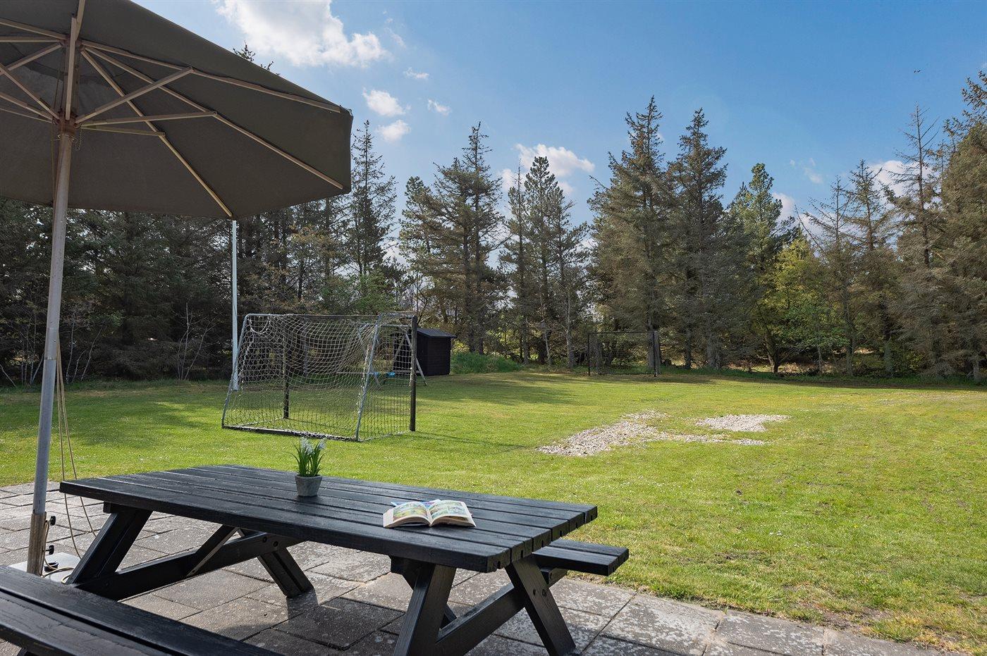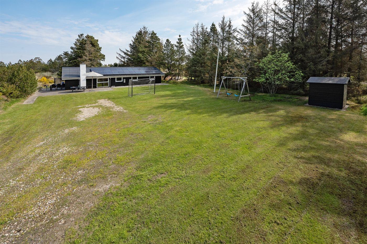 Ferieboligen er beliggende på en 3060 m² stor naturgrund. Der er 1500 m til havet. Nærmeste forretning er beliggende i en afstand af 1500 m. Til ferieboligen hører 60 m² terrasseareal. Desuden er der 10 m² overdækket terrasse. Gynge. Fodboldmål. Grill til rådighed. Parkering ved ferieboligen.