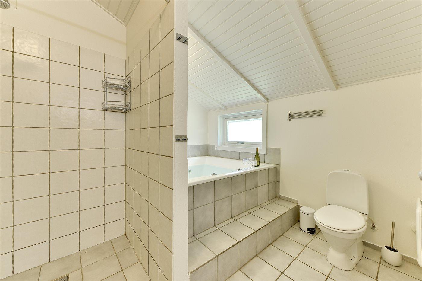 Der er 1 badeværelse med bruseniche og 2 toiletter, heraf 1 gæstetoilet. Der er gulvvarme på 1 badeværelse. I saunaen er der mulighed for afslapning.
