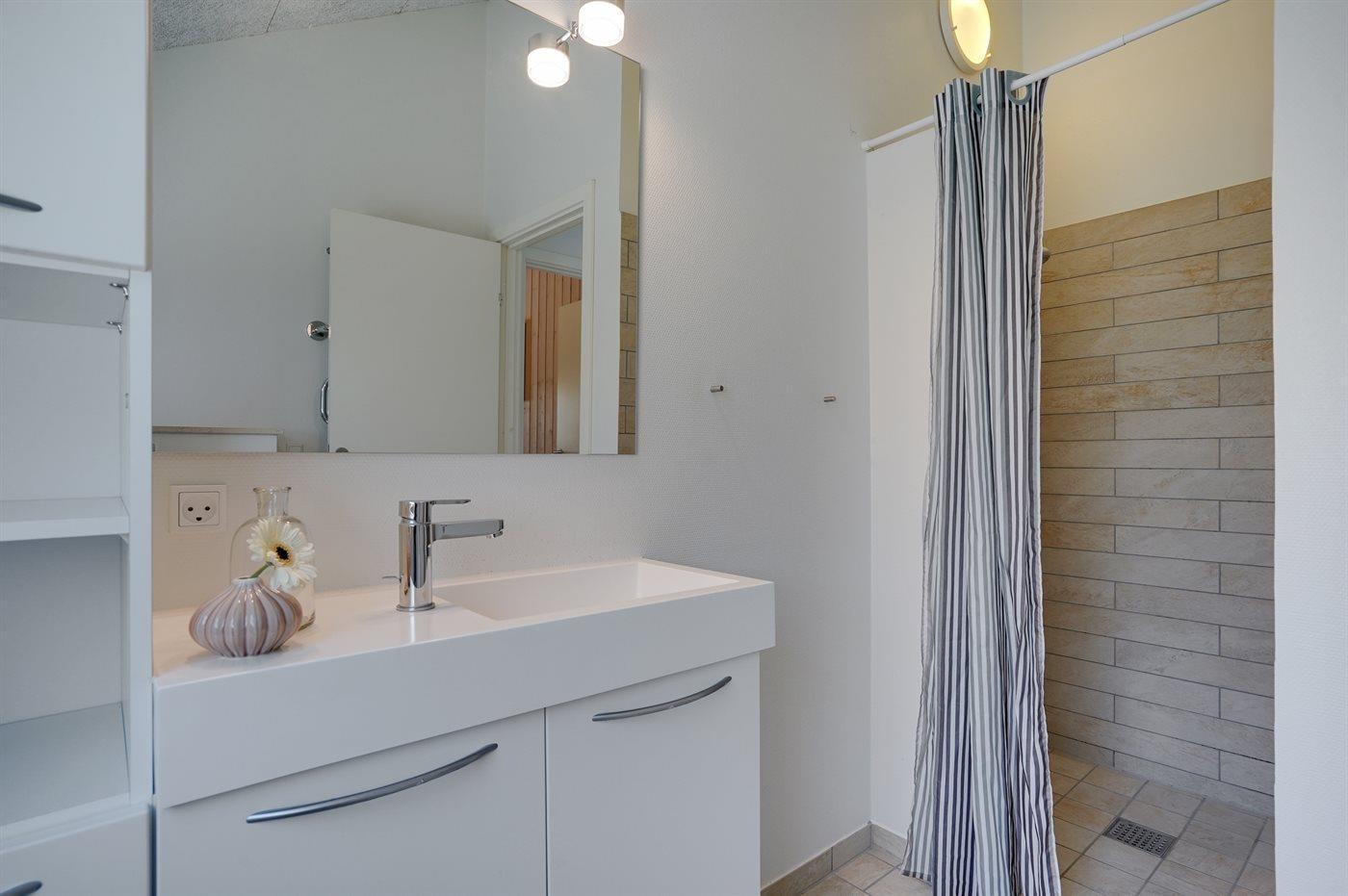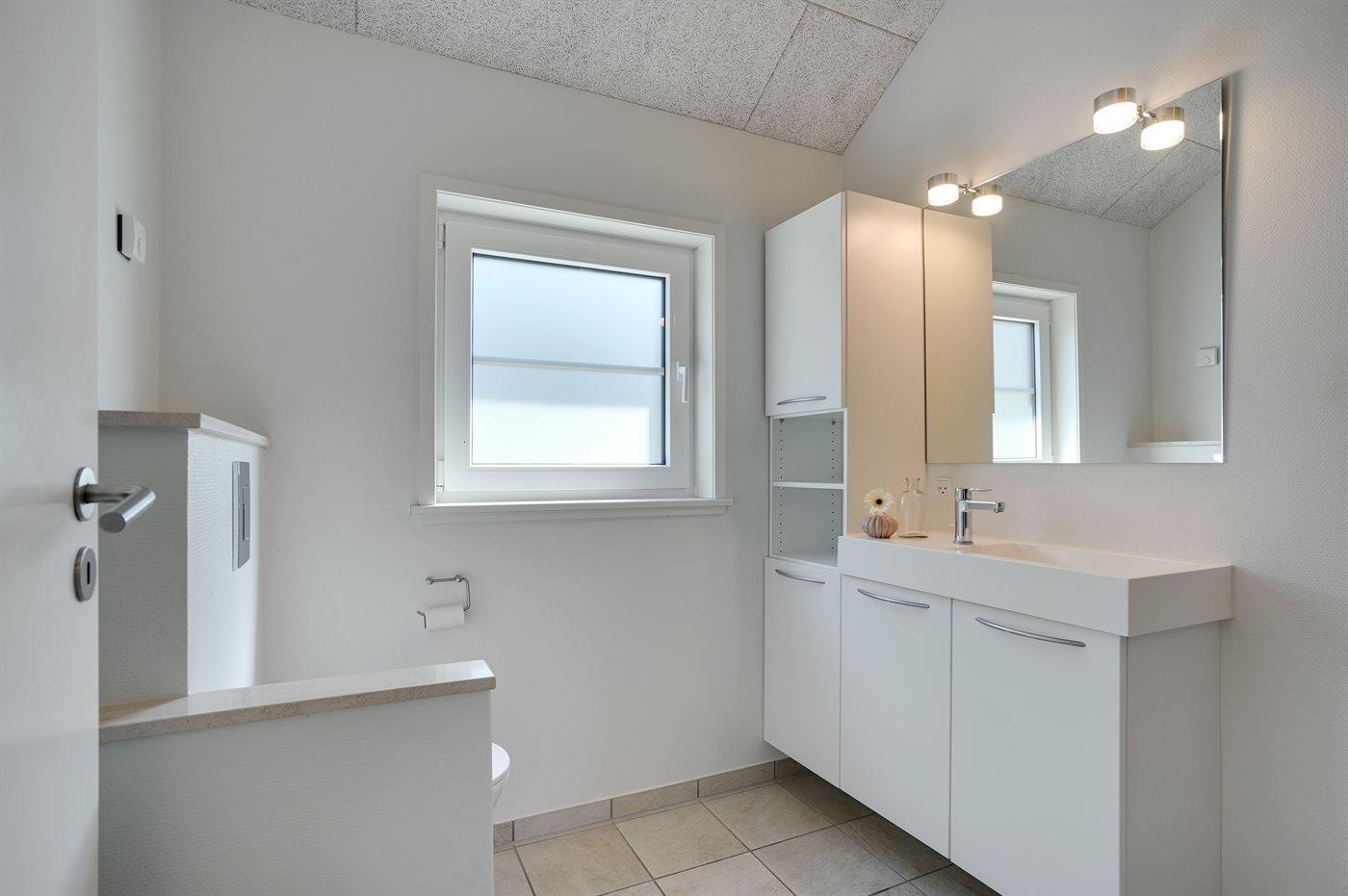 Der er 3 badeværelser med bruseniche og 3 toiletter. Der er gulvvarme på 3 badeværelser. Dampkabine.