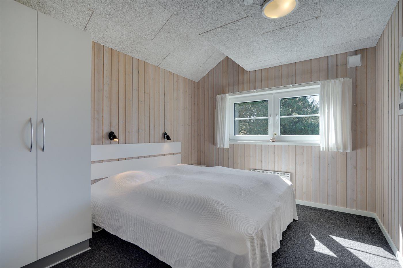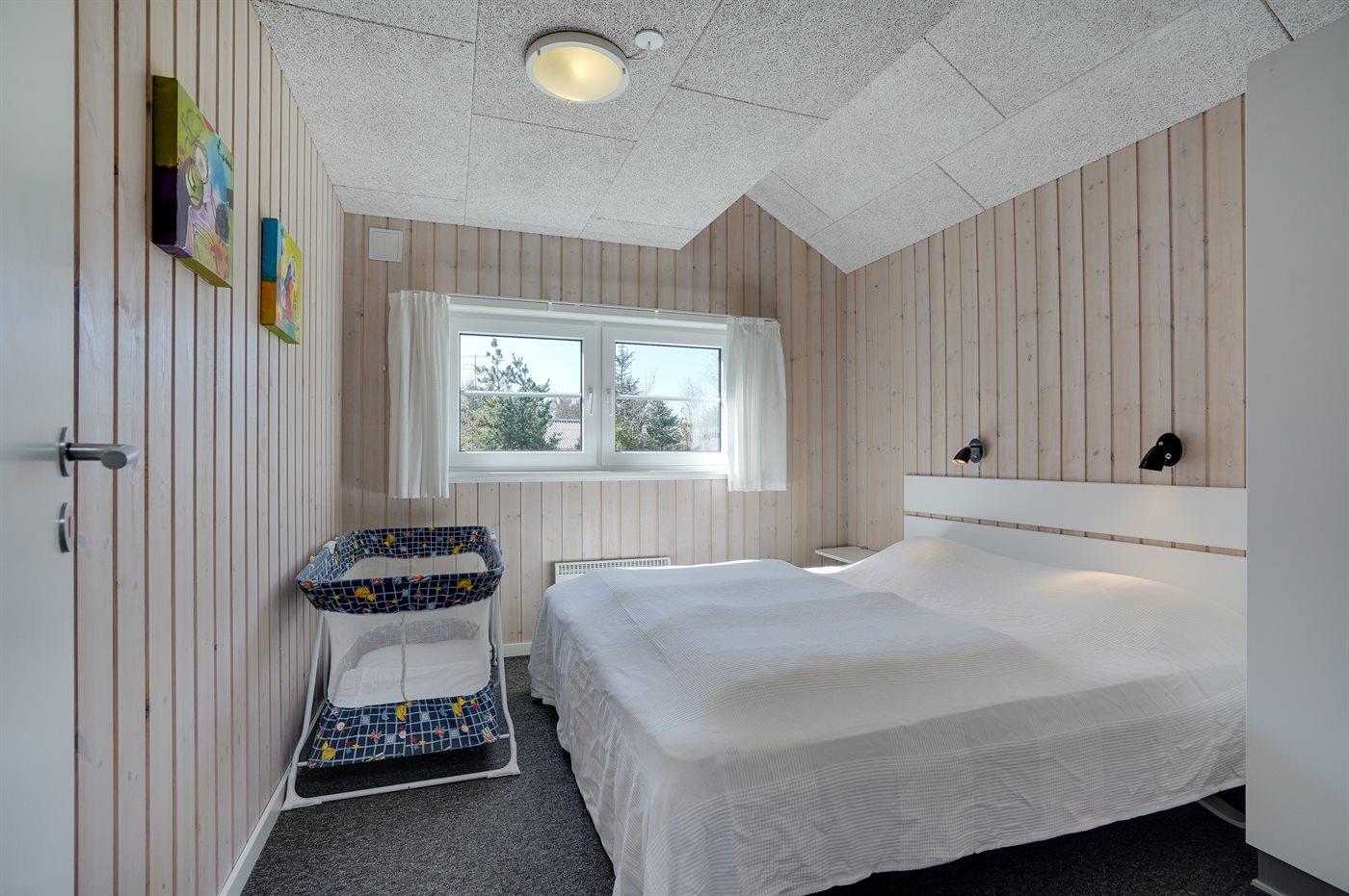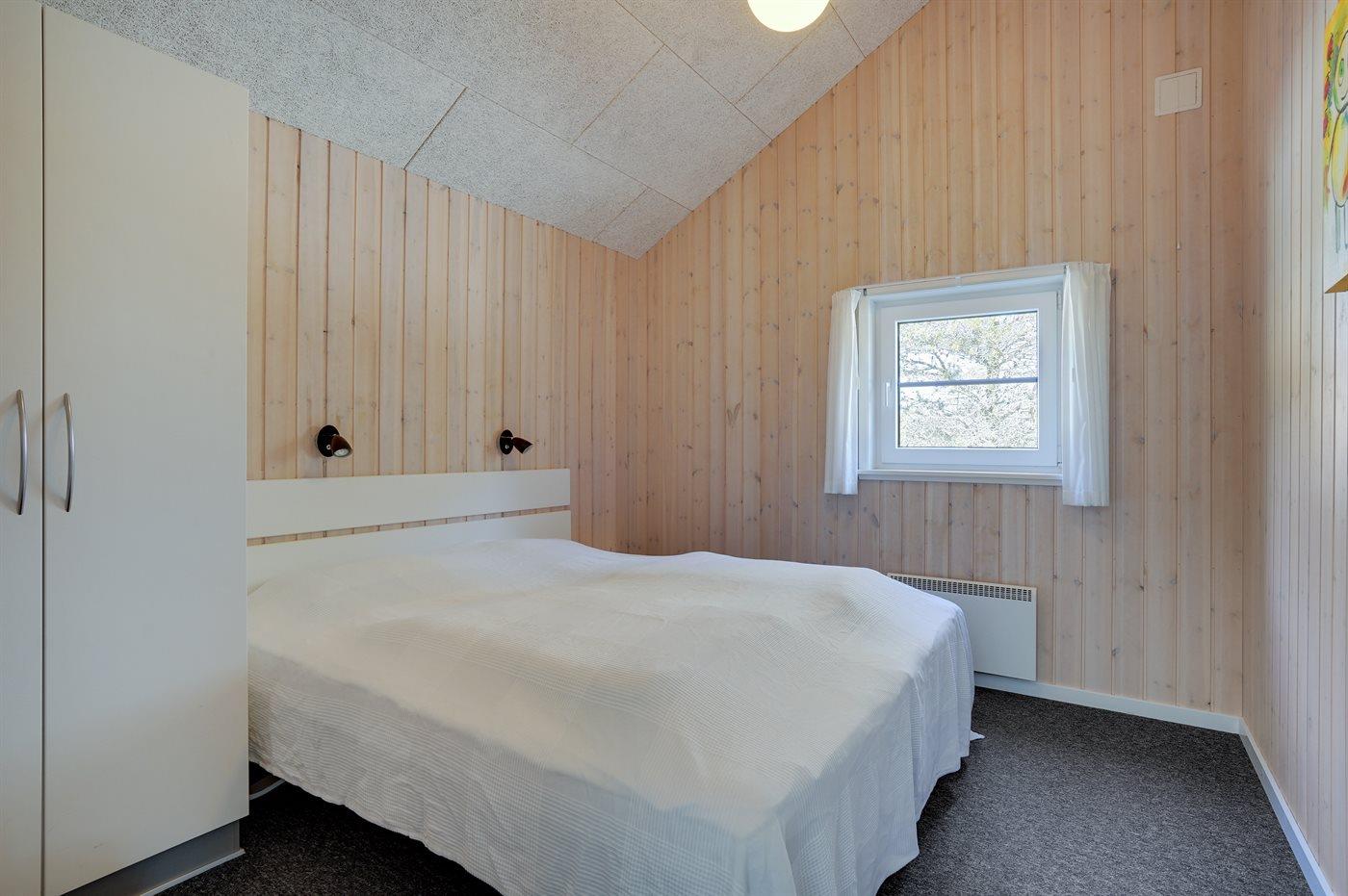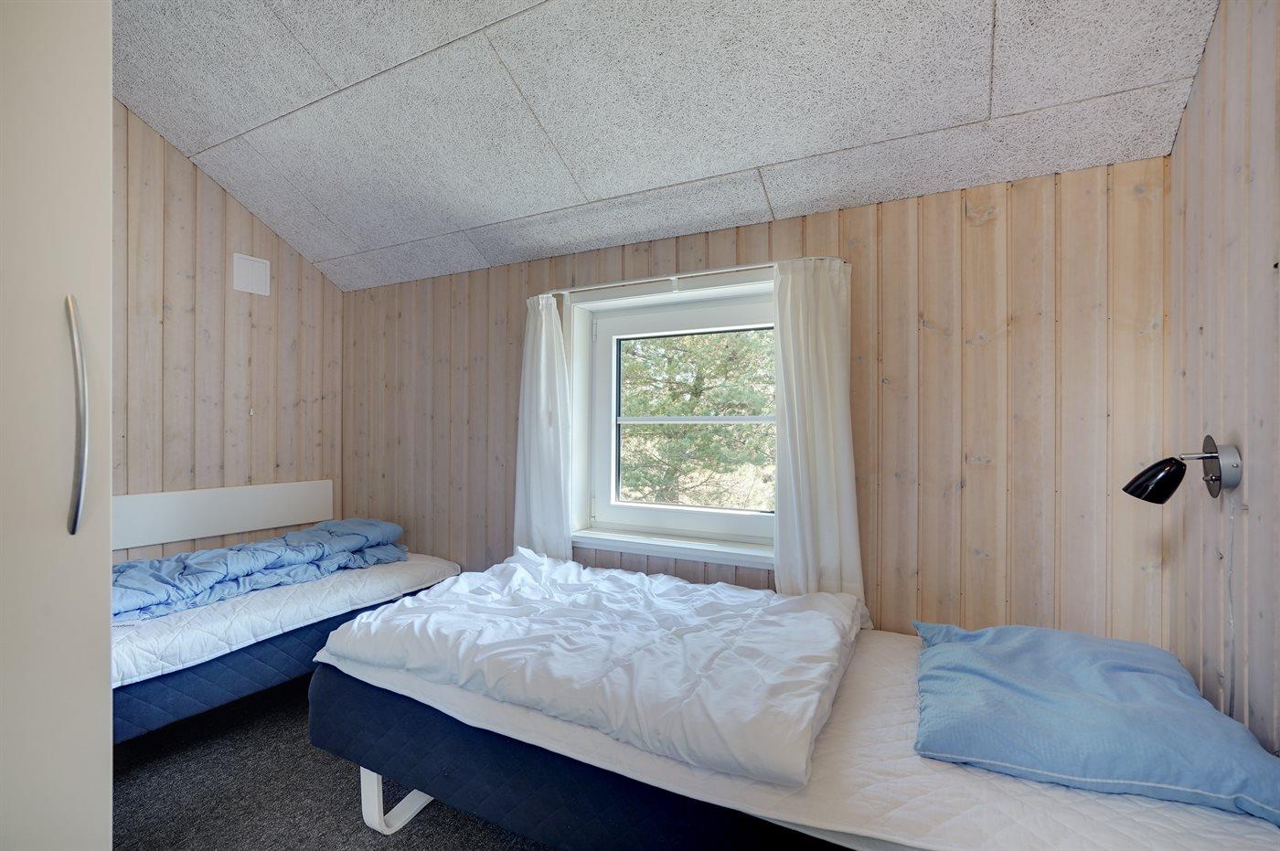 Der er i alt 6 soveværelser. Sovepladserne fordeler sig på: 8 sovepladser i dobbeltsenge. 4 sovepladser i enkeltsenge. 2 sovepladser på madrasser. 2 af disse sovepladser befinder sig på husets hems. Derudover er der 1 stk. barneseng.