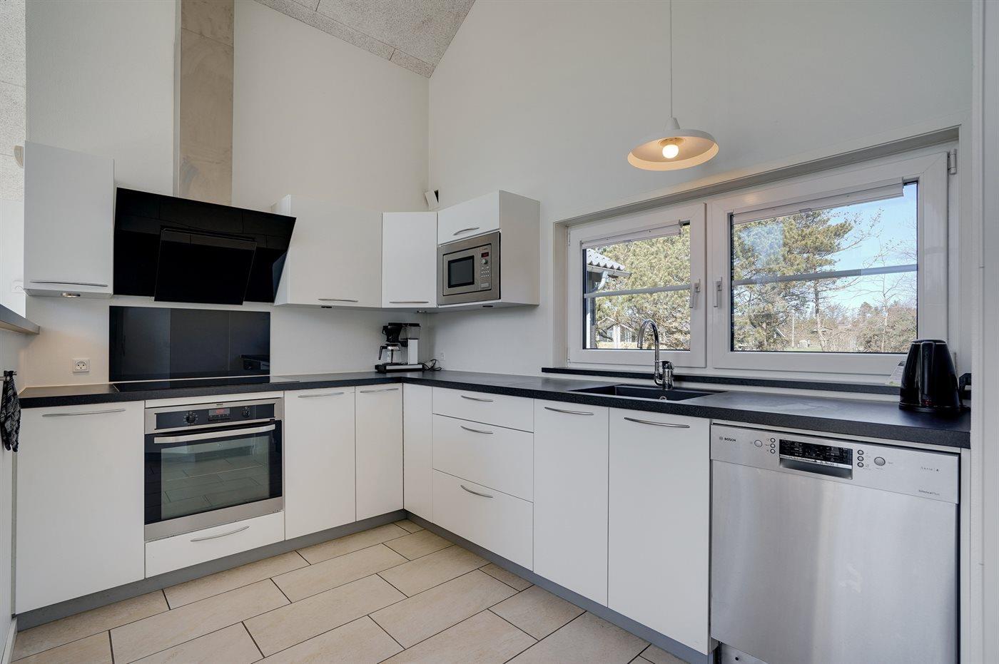 Køkkenet er udstyret med 1 amerikansk køleskab. Der er 4 keramiske kogeplader, varmluftovn, mikrobølgeovn samt opvaskemaskine.