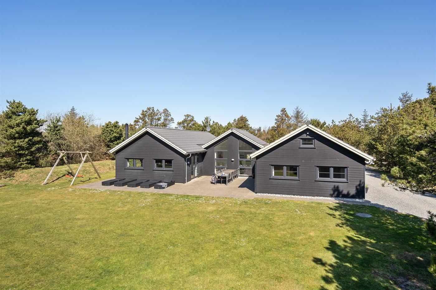 Rummeligt sommerhus i Blåvand med pool, aktivitetsrum, spa og stor grund tæt på havet og byen.