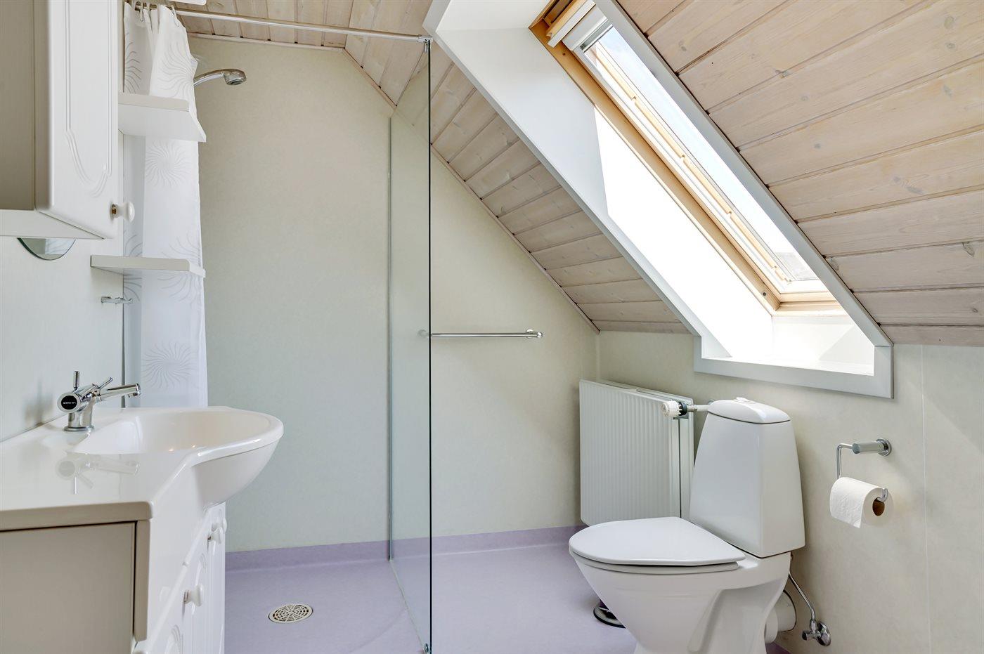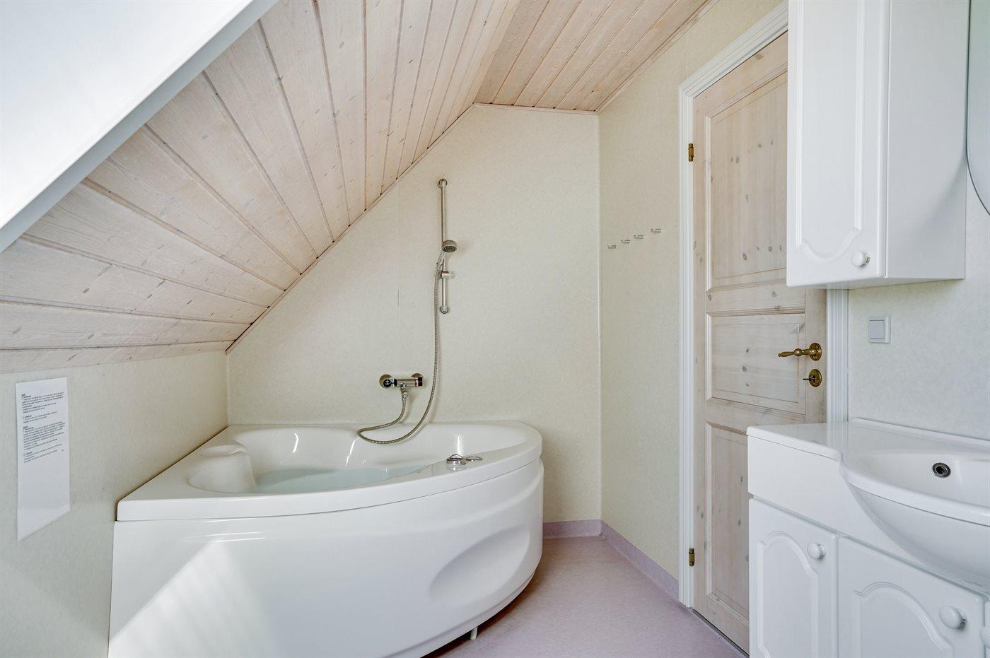 Der er 2 badeværelser med bruseniche og 2 toiletter, heraf 1 gæstetoilet. Der er gulvvarme på 1 badeværelse. I den infrarøde sauna er der mulighed for afslapning.