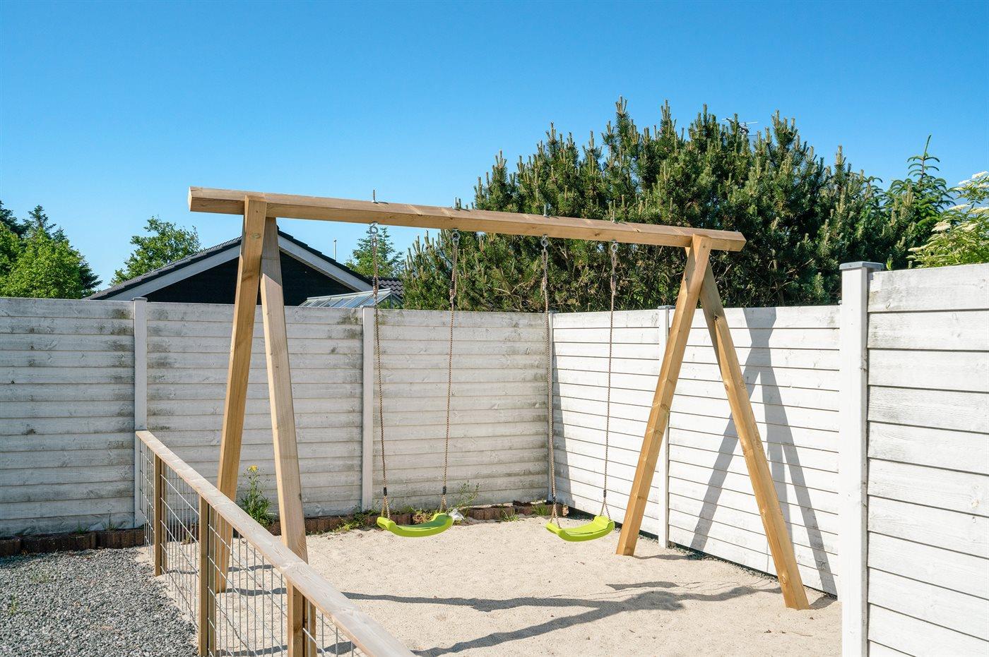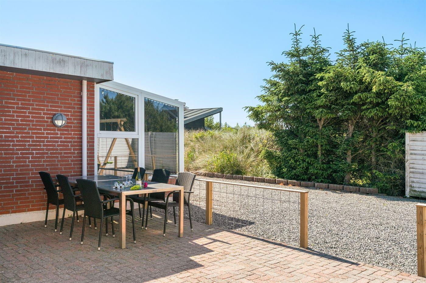 Ferieboligen er beliggende på en 250 m² stor naturgrund. Der er 500 m til havet. Nærmeste forretning er beliggende i en afstand af 300 m. Til ferieboligen hører 80 m² terrasseareal. Gynge. Sandkasse. Grill til rådighed. Parkering ved ferieboligen.