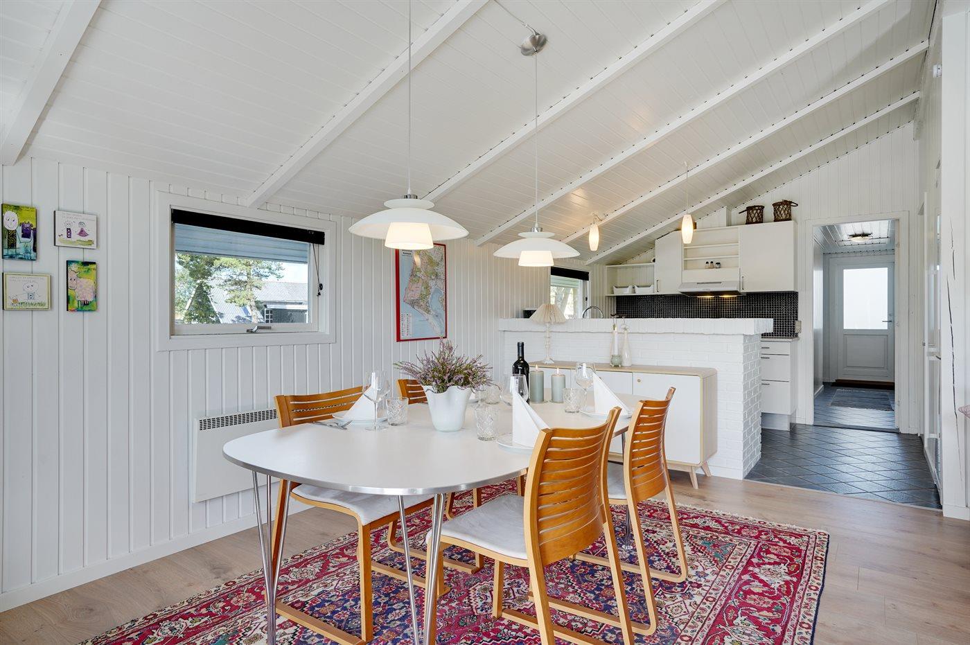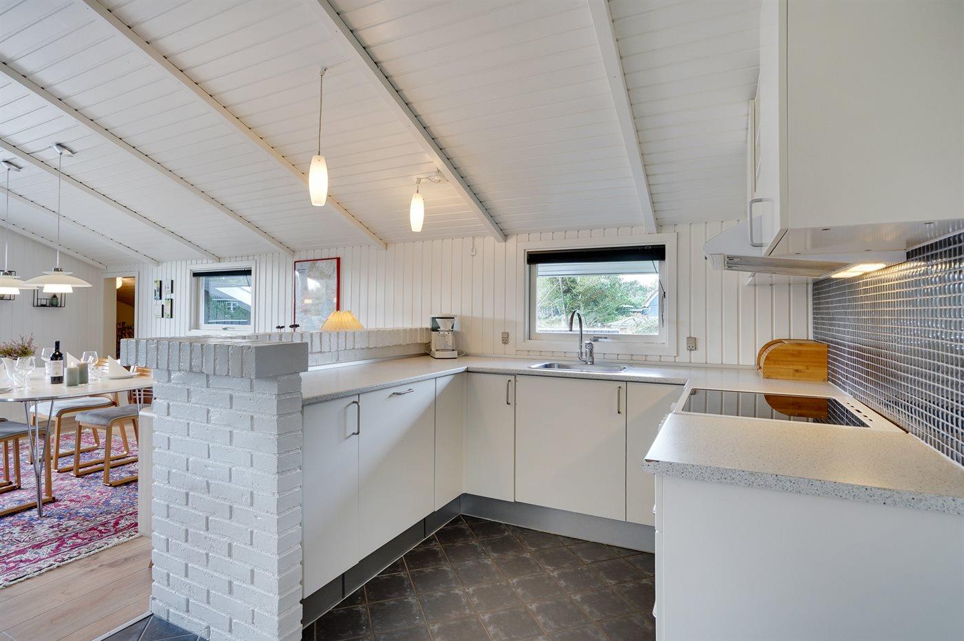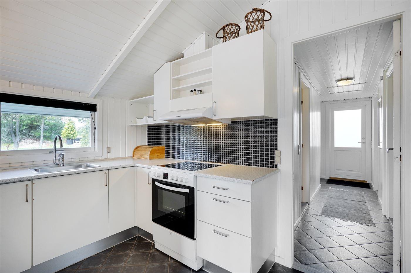 Køkkenet er udstyret med 1 køleskab. Der er 4 keramiske kogeplader, varmluftovn samt opvaskemaskine.