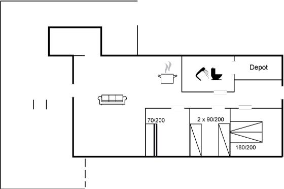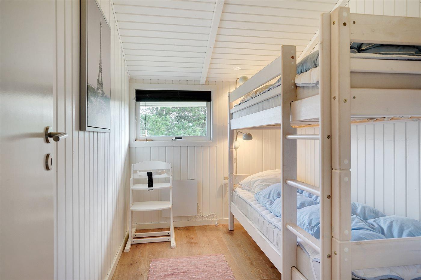 Der er i alt 3 soveværelser. Sovepladserne fordeler sig på: 2 sovepladser i dobbeltseng. 2 sovepladser i enkeltsenge. 2 sovepladser i køjeseng. Derudover er der 1 stk. barneseng.