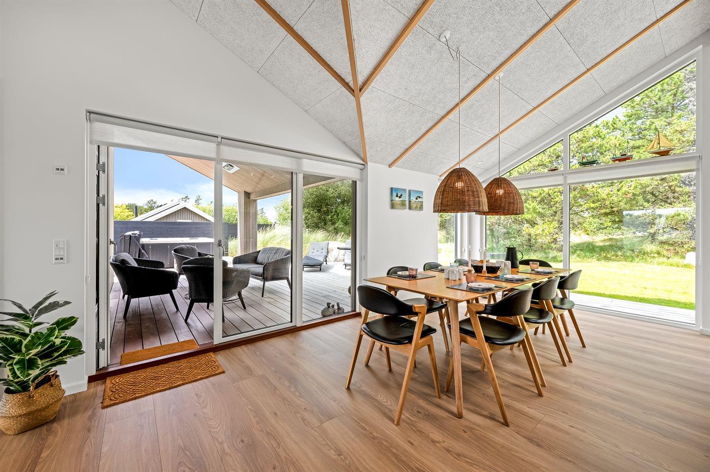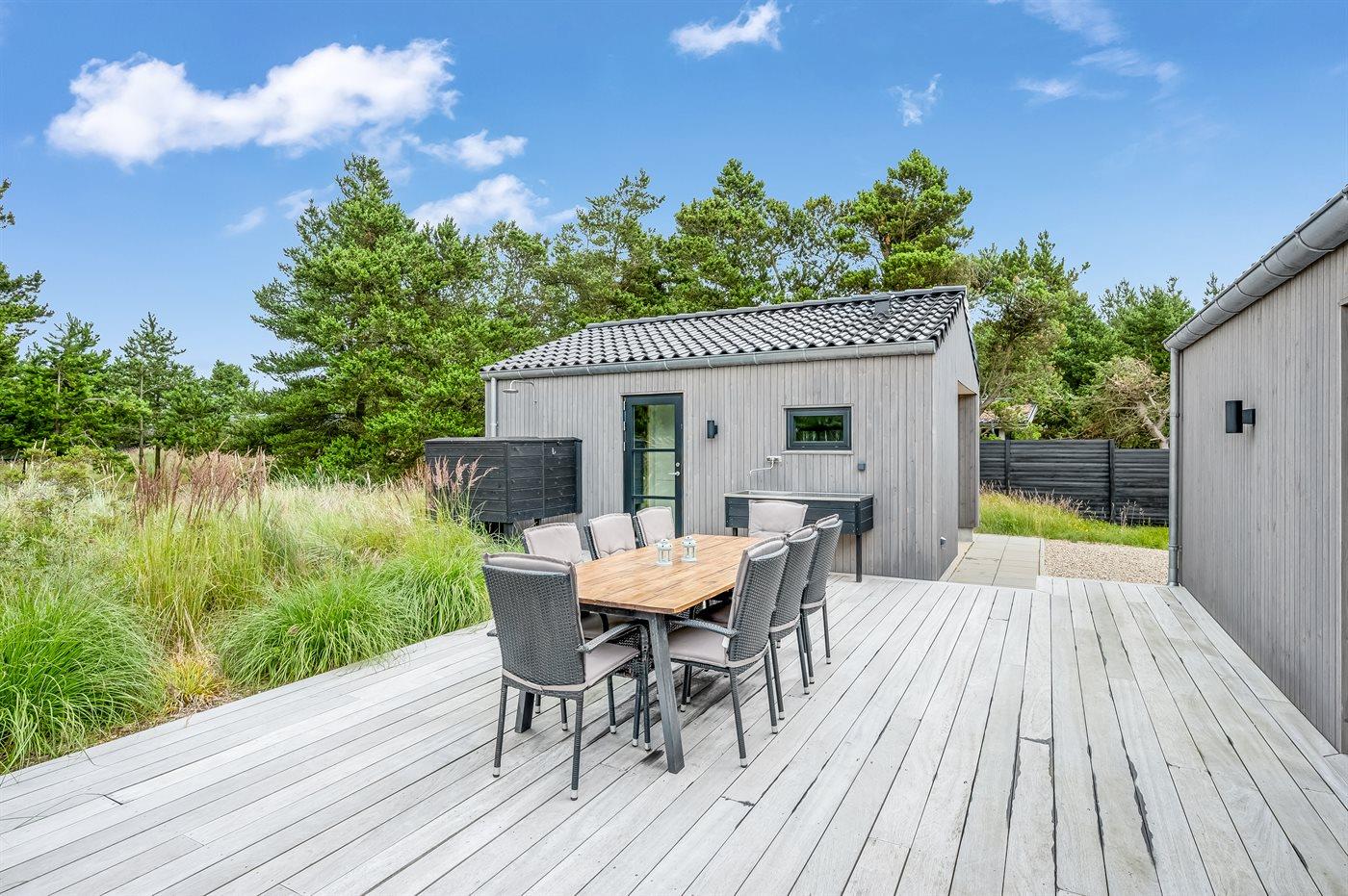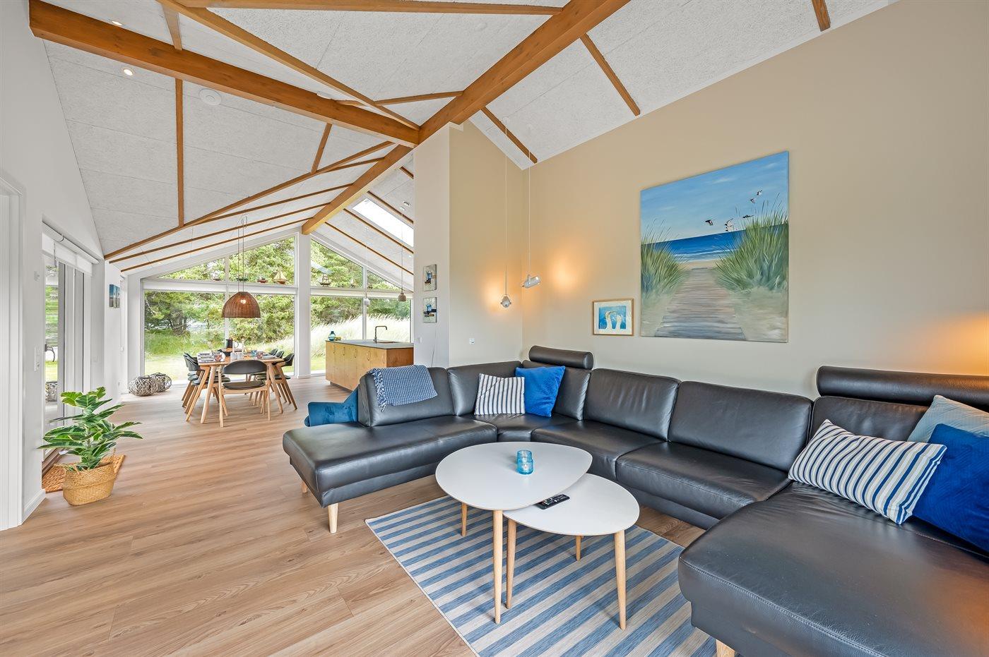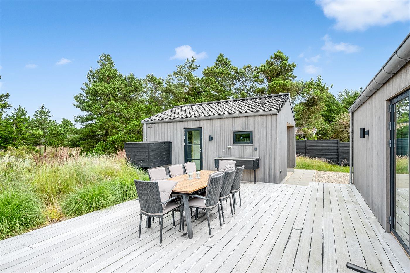 Flot lavenergi sommerhus i Blåvand med spa, sauna og aktivitetsrum på stor naturgrund.