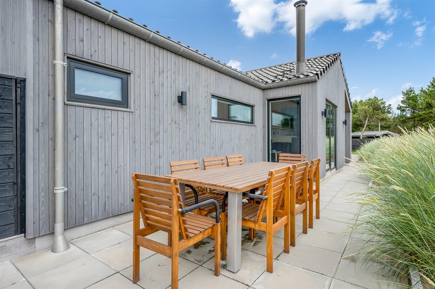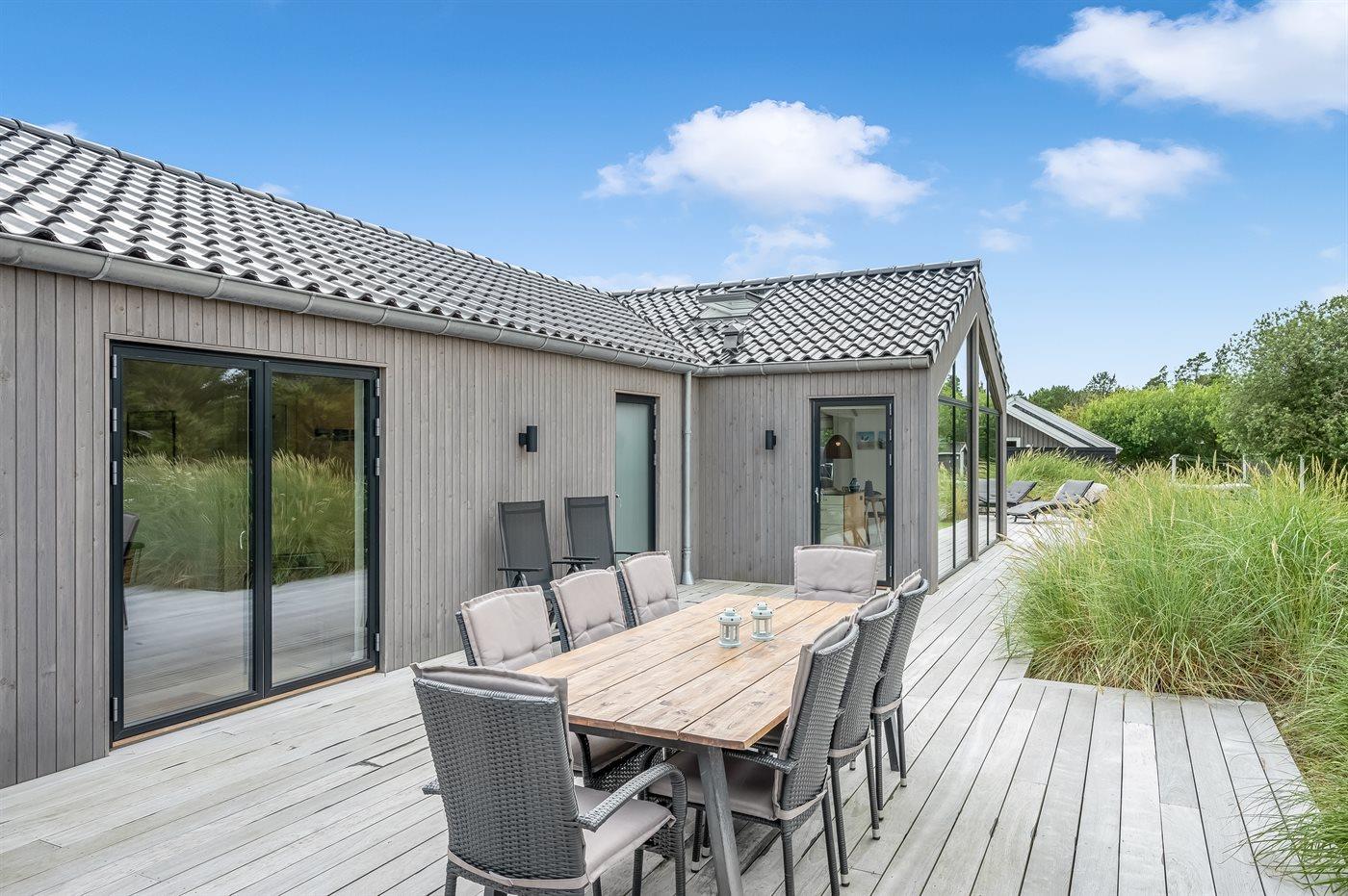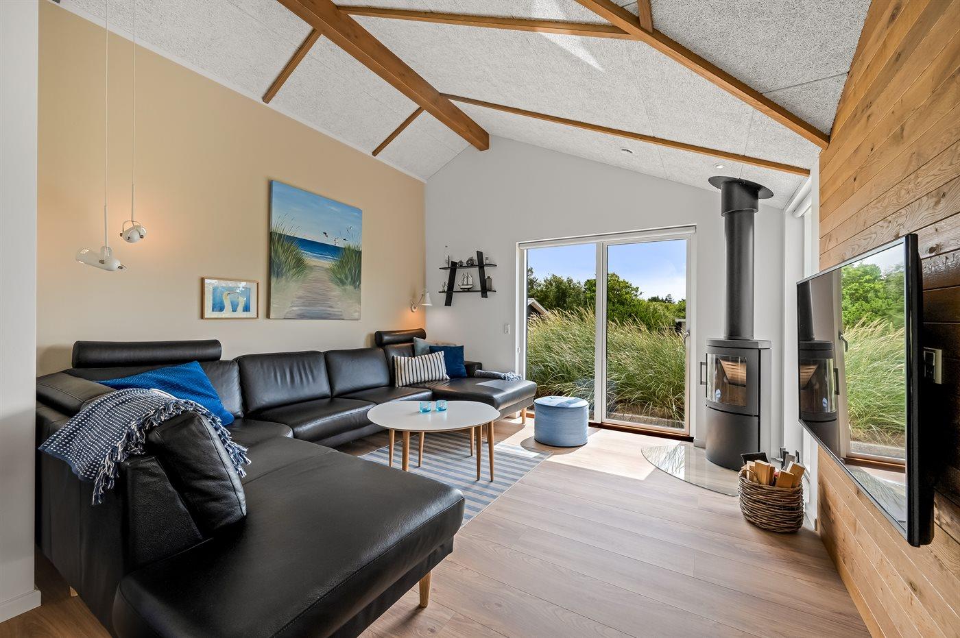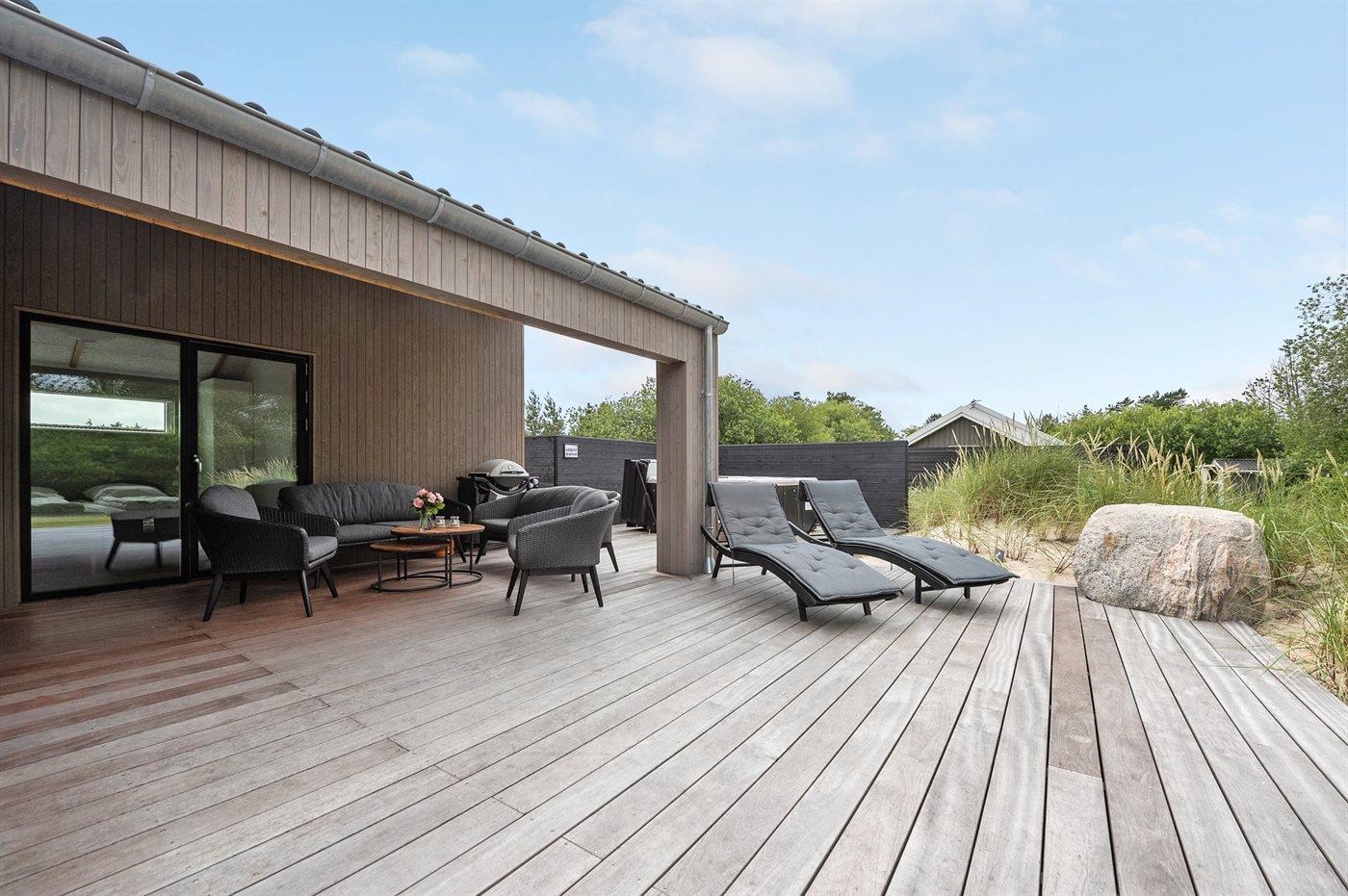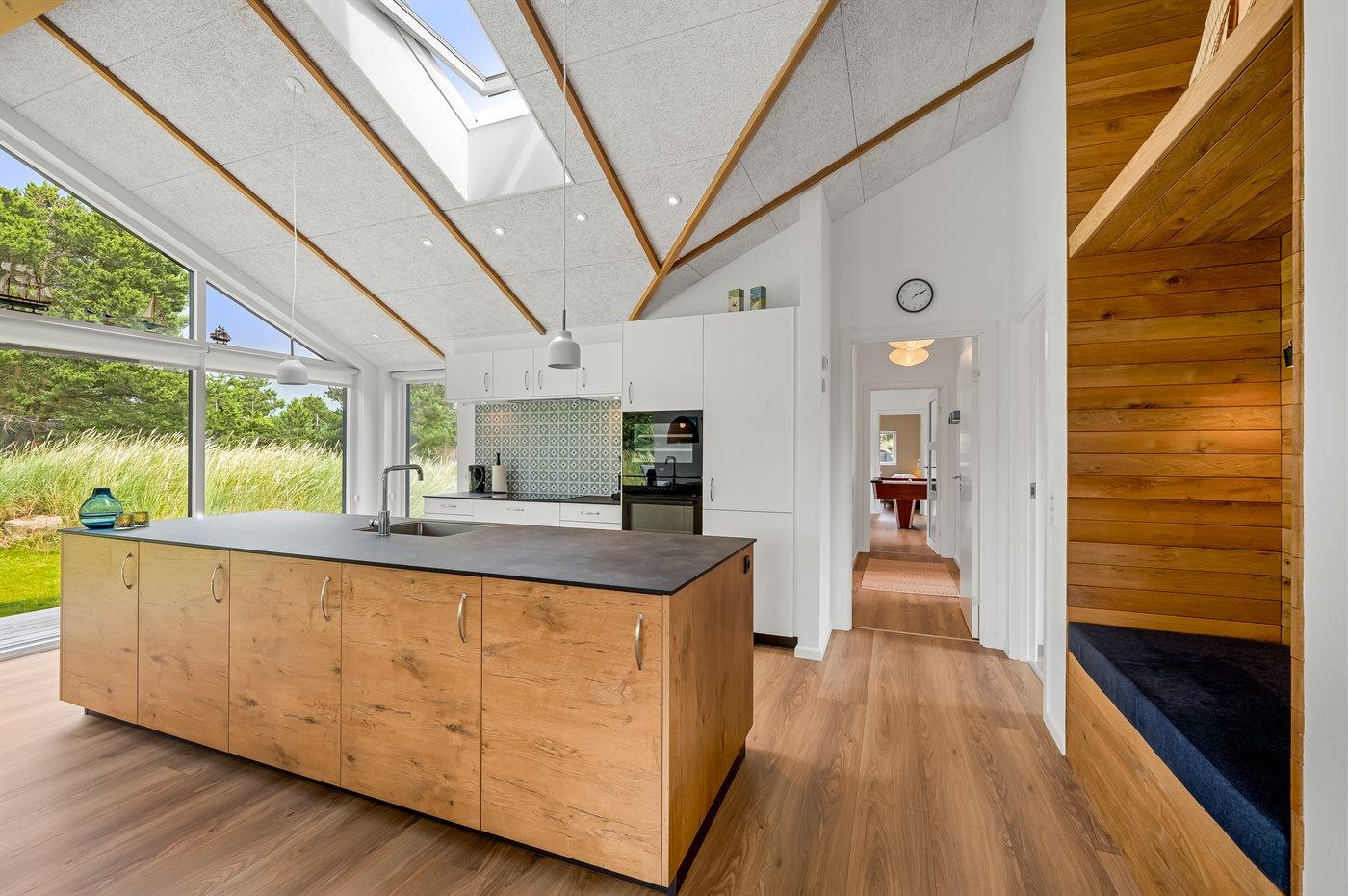 Flot lavenergi sommerhus i Blåvand med spa, sauna og aktivitetsrum på stor naturgrund.