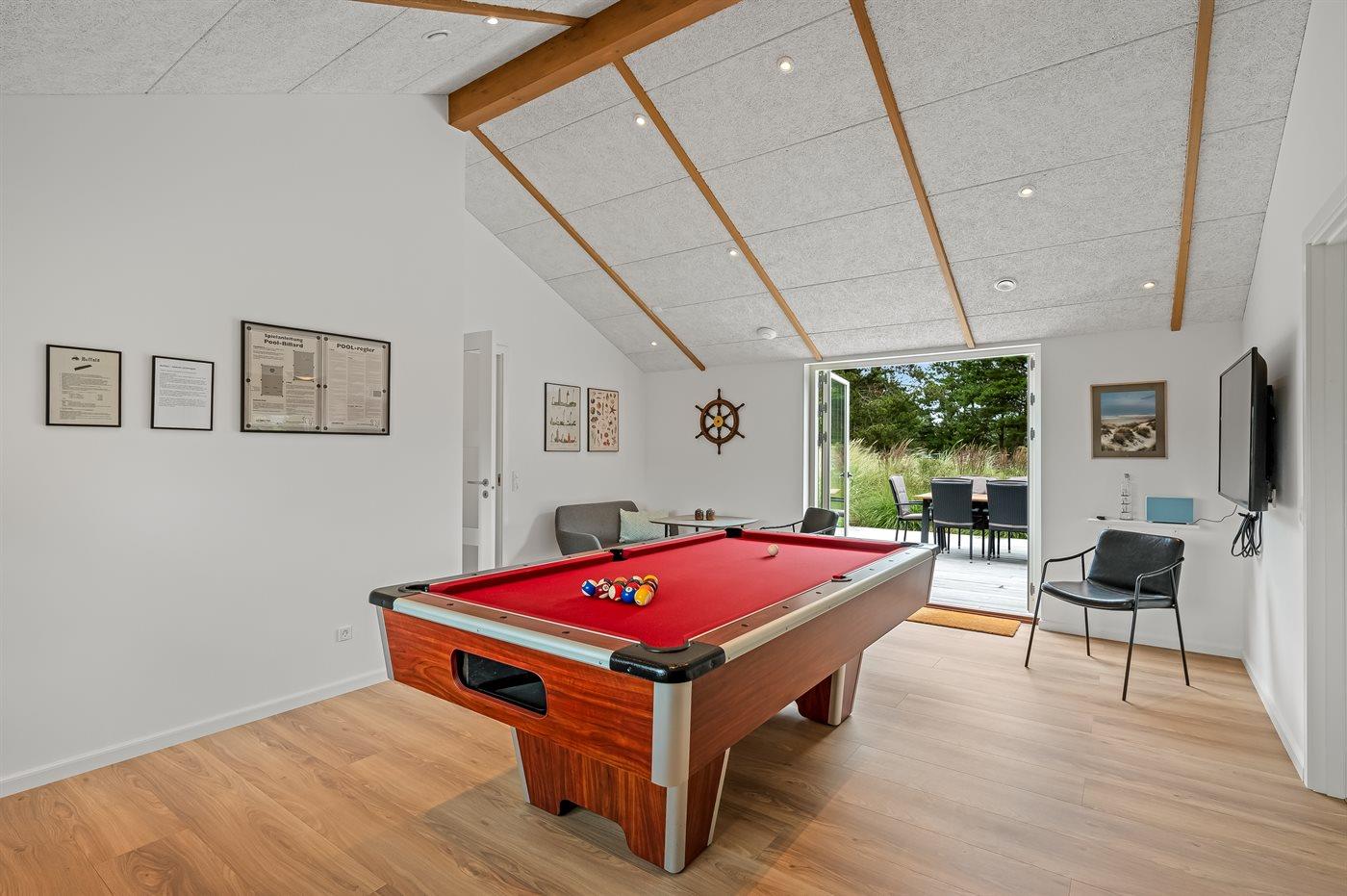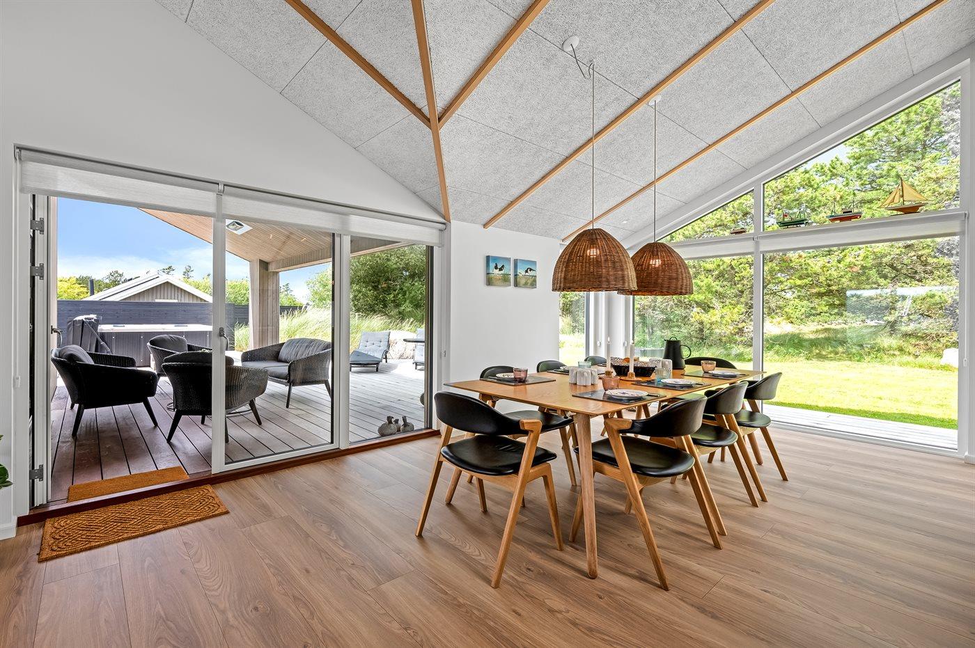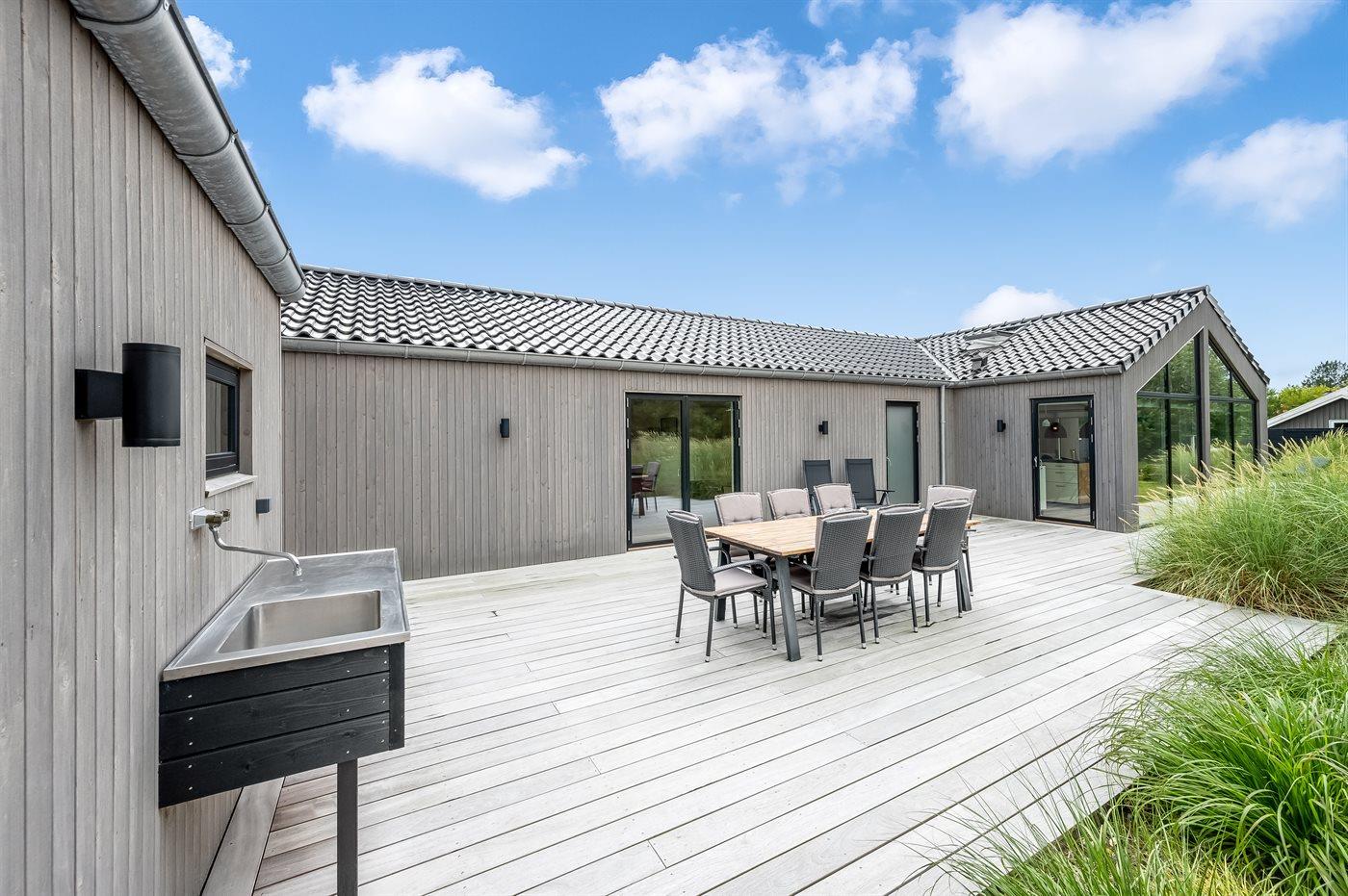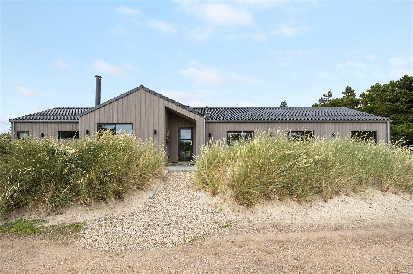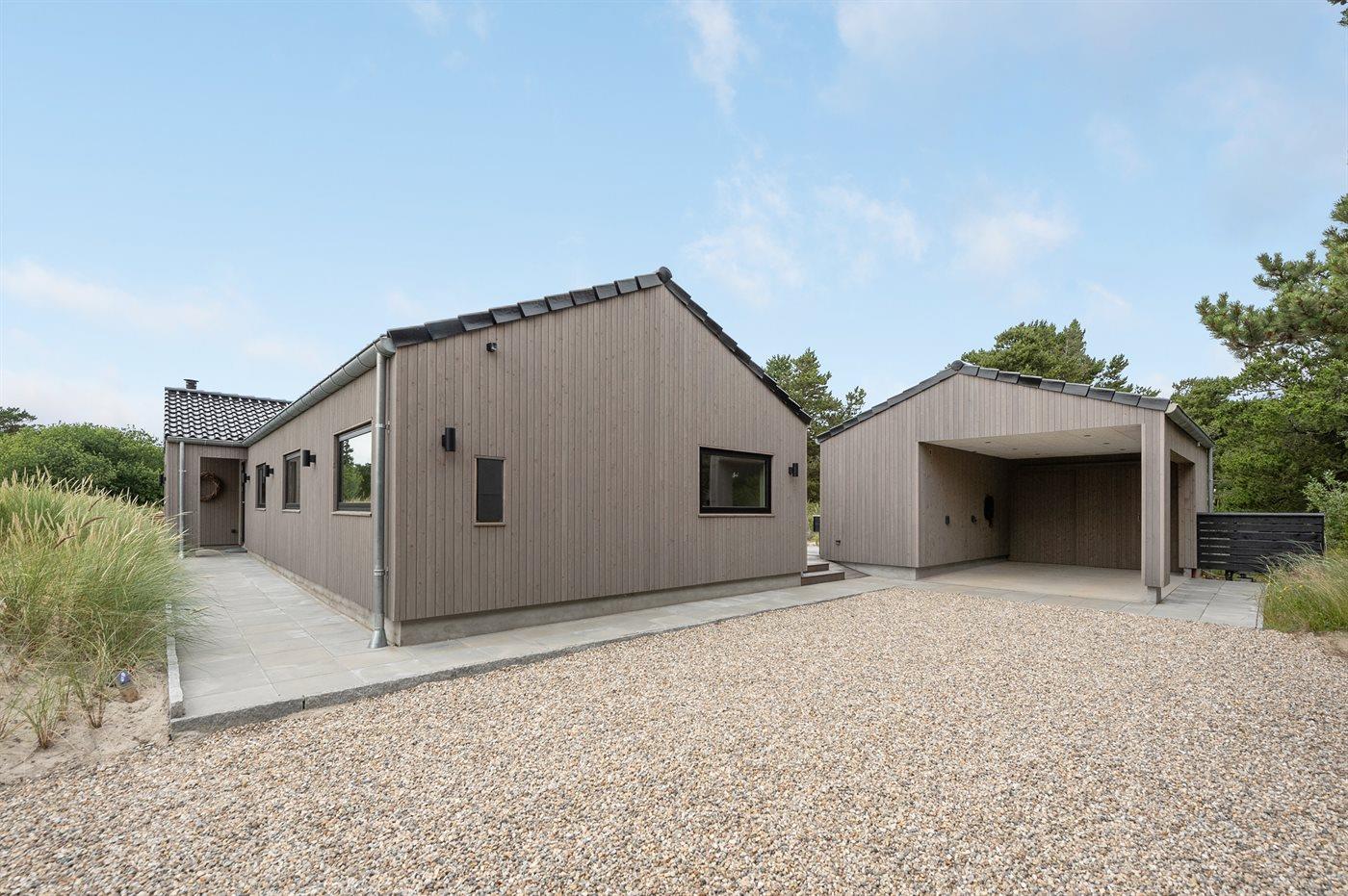 Flot lavenergi sommerhus i Blåvand med spa, sauna og aktivitetsrum på stor naturgrund.