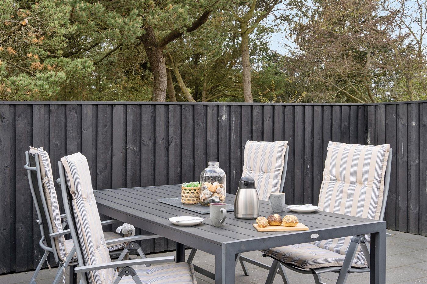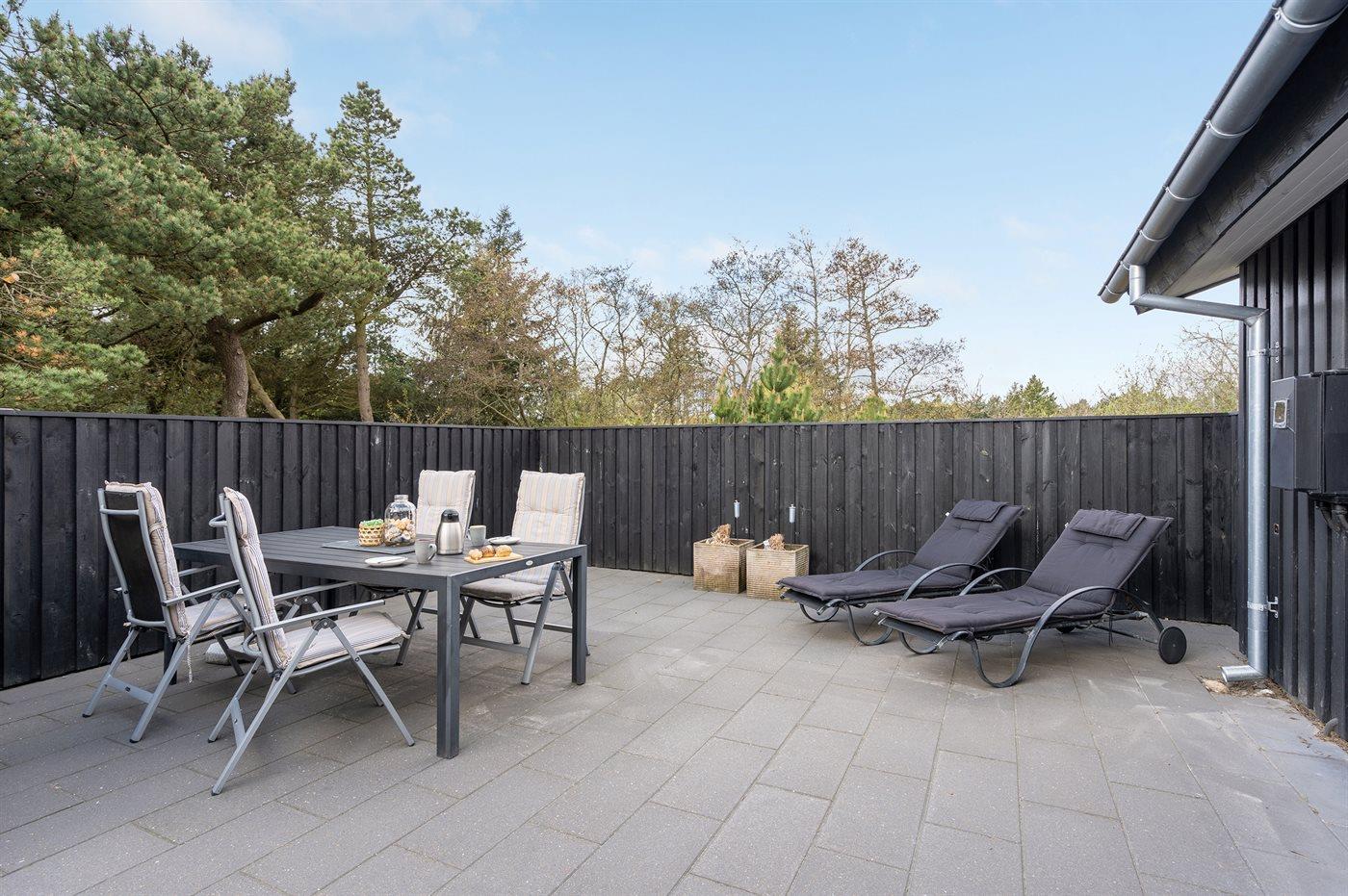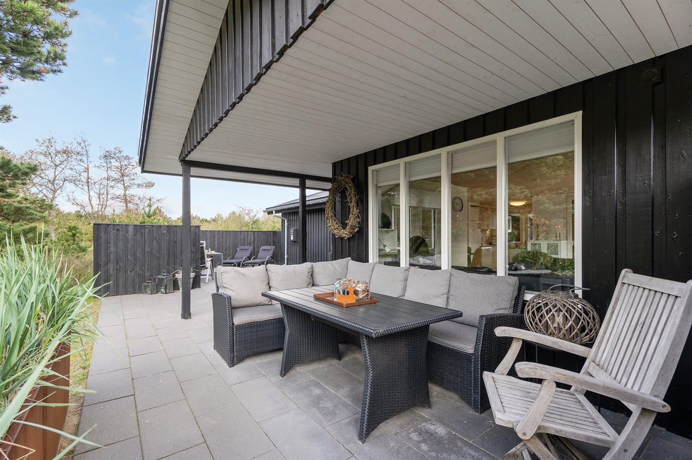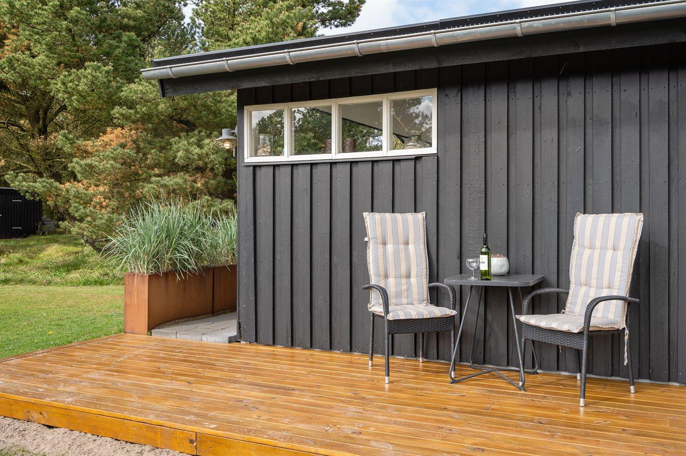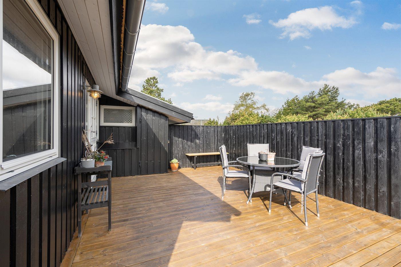 Ferieboligen er beliggende på en 2500 m² stor naturgrund. Grunden er indhegnet. Der er 2200 m til havet. Nærmeste forretning er beliggende i en afstand af 1200 m. Til ferieboligen hører 180 m² terrasseareal. Desuden er der 10 m² overdækket terrasse. Gynge. Sandkasse. Trampolin. Grill til rådighed. Der er installeret stik til opladning af elbil. Parkering ved ferieboligen.