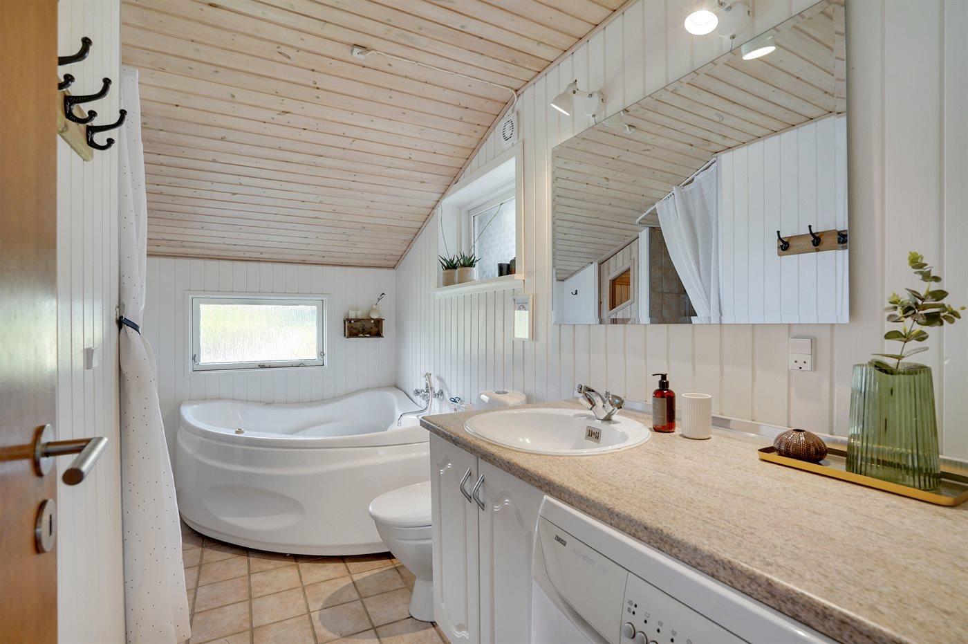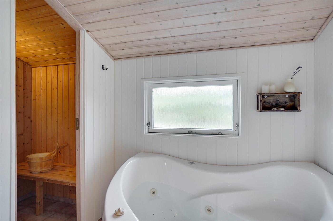 Der er 1 badeværelse med bruseniche og 1 toilet.. Der er gulvvarme på 1 badeværelse. I saunaen er der mulighed for afslapning.