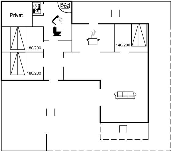 Der er i alt 3 soveværelser. Sovepladserne fordeler sig på: 6 sovepladser i dobbeltsenge.