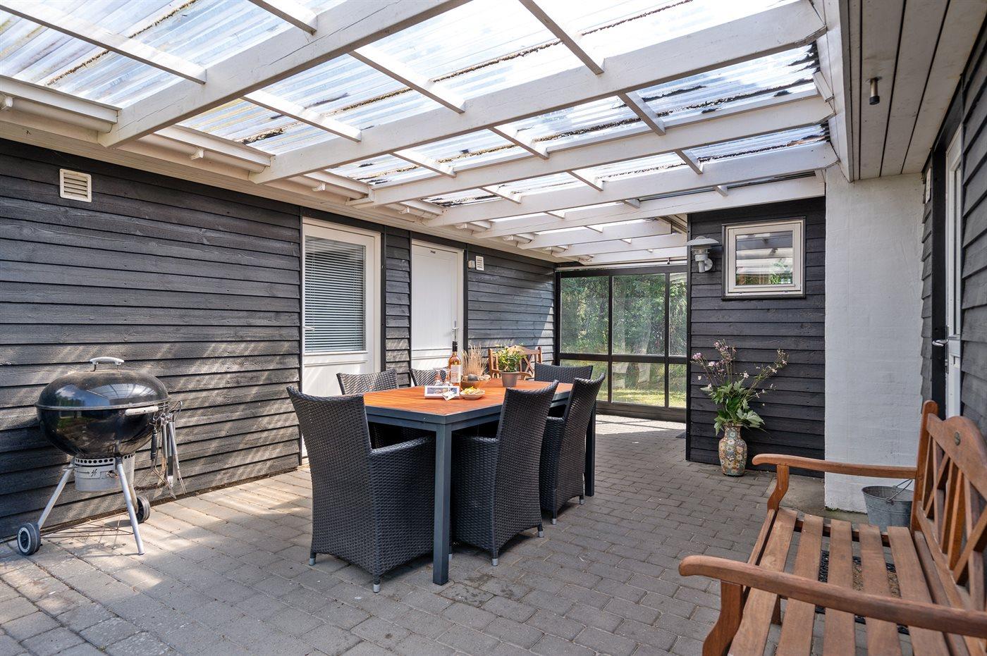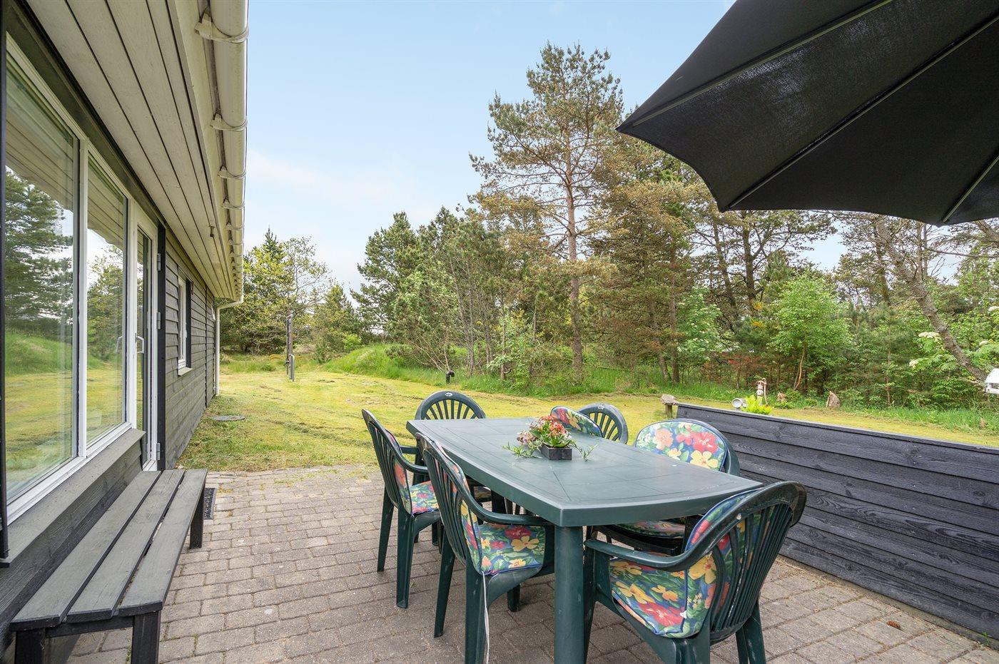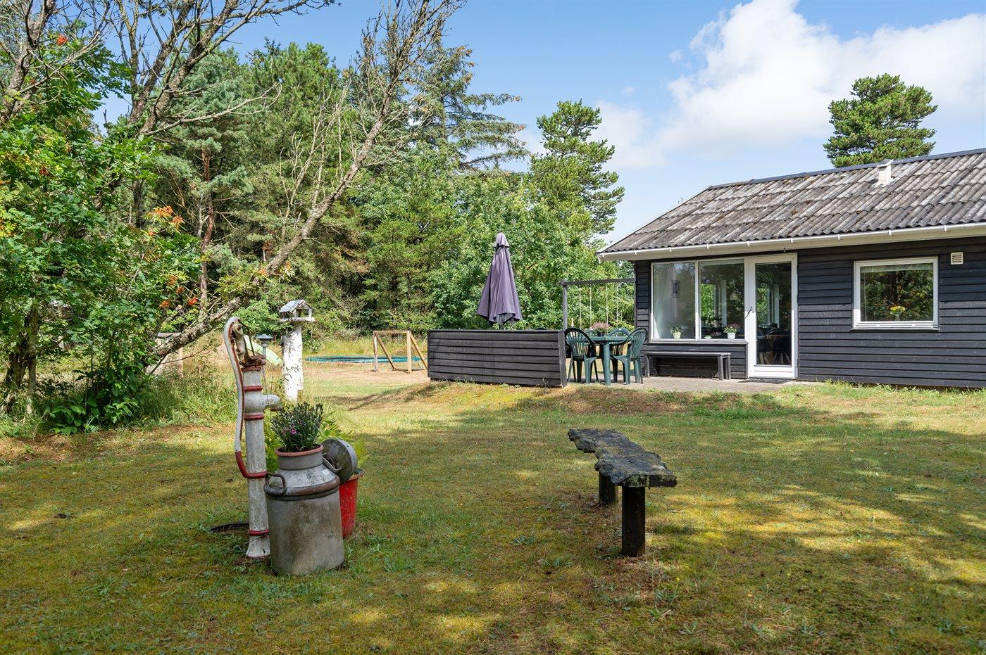 Ferieboligen er beliggende på en 2600 m² stor naturgrund. Der er 2000 m til havet. Nærmeste forretning er beliggende i en afstand af 1500 m. Til ferieboligen hører 45 m² åbent og 25 m² overdækket terrasseareal - heraf i alt 30 m² lukket terrasse. Desuden er der en grill til rådighed. Til de mindste er der flere aktivitetsmuligheder bl.a. trampolin, gynge, sandkasse, ruchebane og der er fodboldmål. I depotrummet er der tillige en del legeredskaber. Parkering ved sommerhuset. Der er installeret stik til opladning af elbil. Type 2 stik.