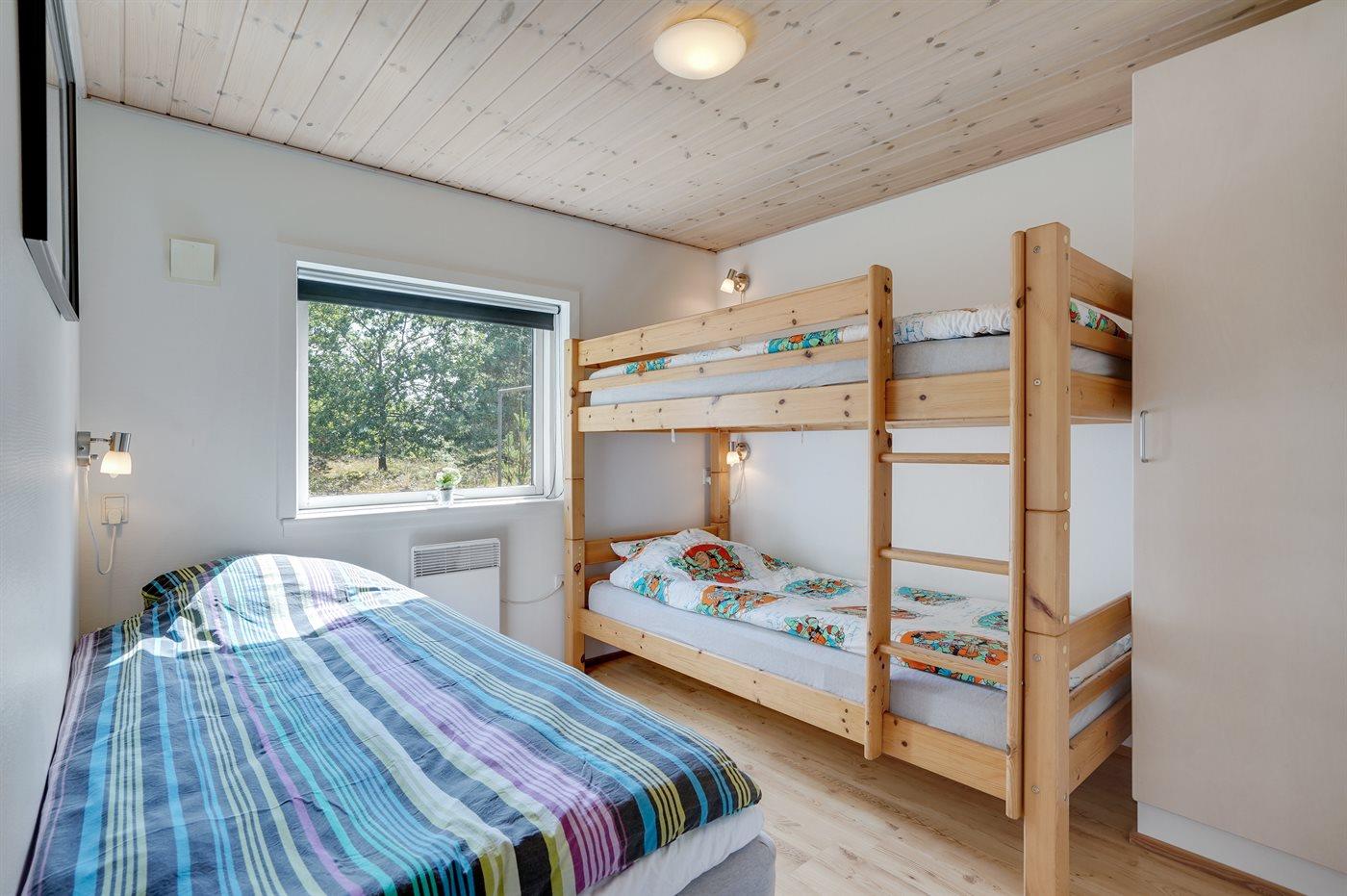 Der er 2 soveværelser. Sovepladserne fordeler sig på 2 sovepladser i dobbeltseng, 1 soveplads i enkeltseng og 2 sovepladser i køjeseng. Derudover er der en barneseng.