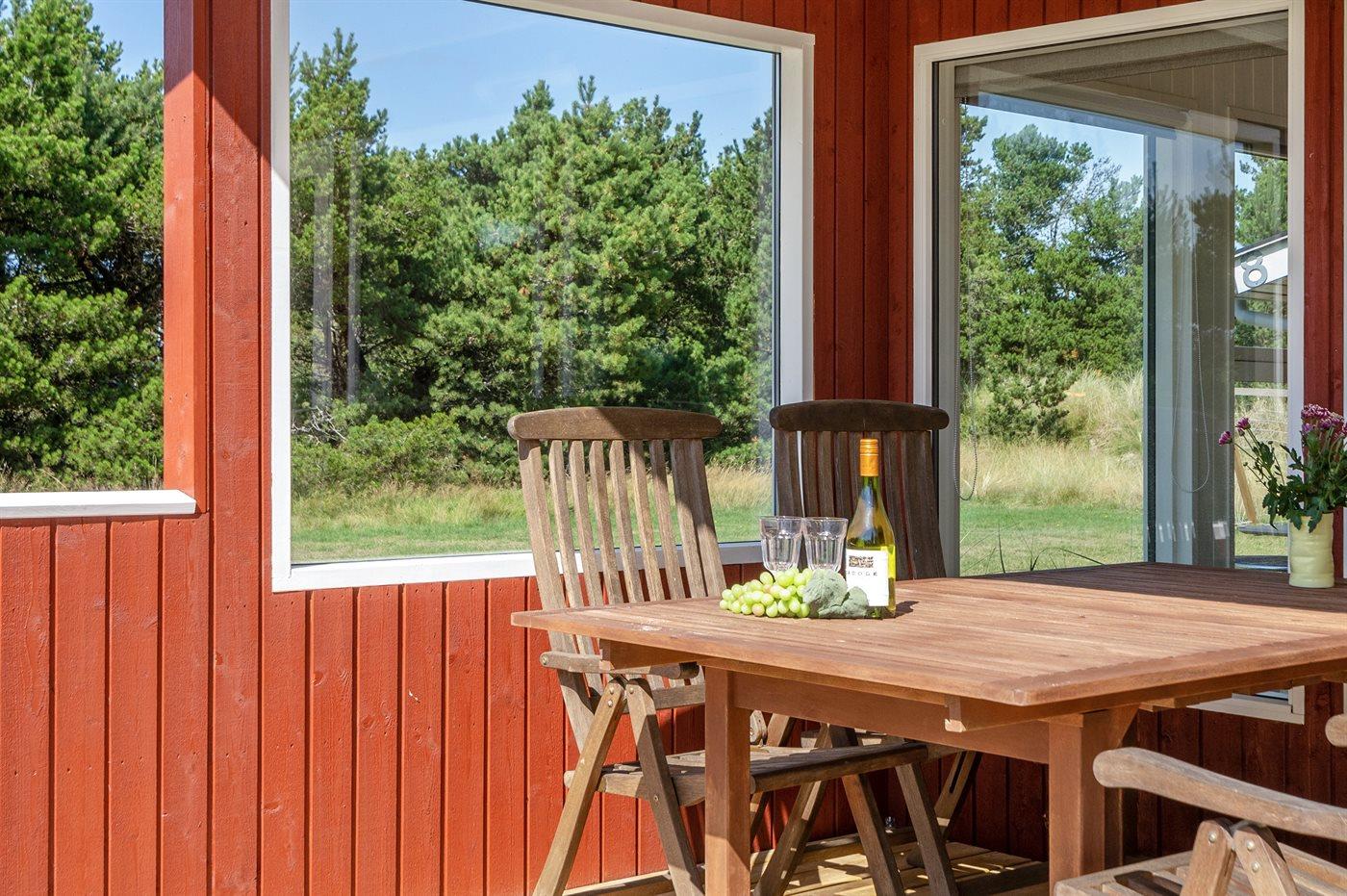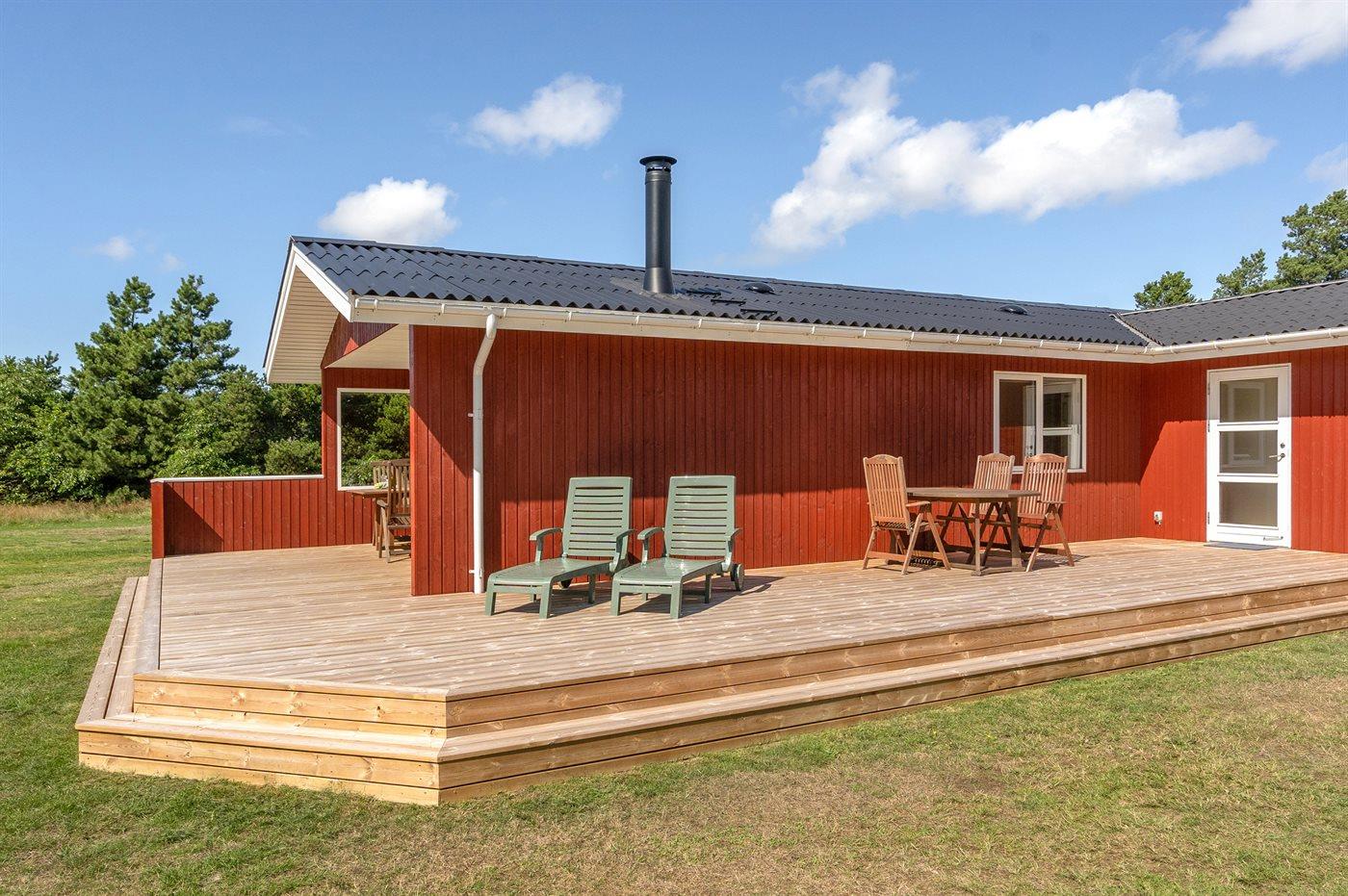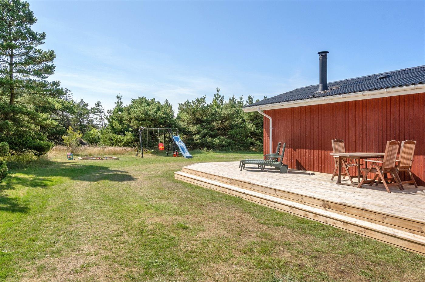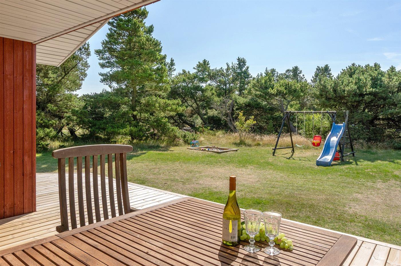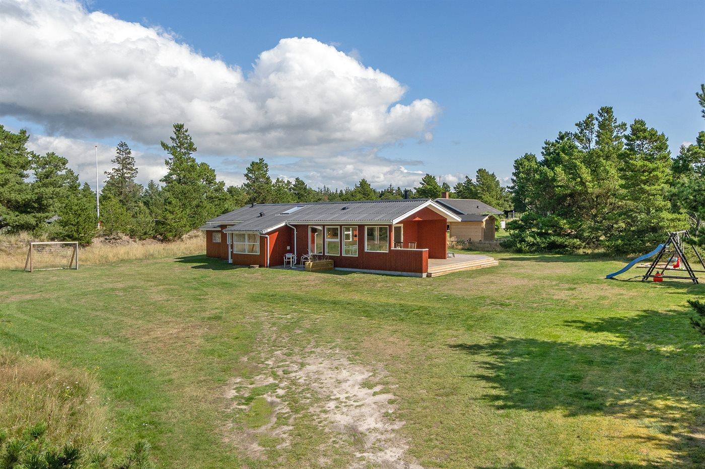 Ferieboligen er beliggende på en 2428 m² stor naturgrund. Der er 1500 m til havet. Nærmeste forretning er beliggende i en afstand af 2000 m. Til ferieboligen hører 61 m² terrasseareal. Desuden er der 11 m² overdækket terrasse. Der er redskabsrum. Gynge. Sandkasse. Rutchebane. Petanque. Fodboldmål. Der ligger en legeplads i en afstand af 400 m. Grill til rådighed. Parkering ved ferieboligen.
