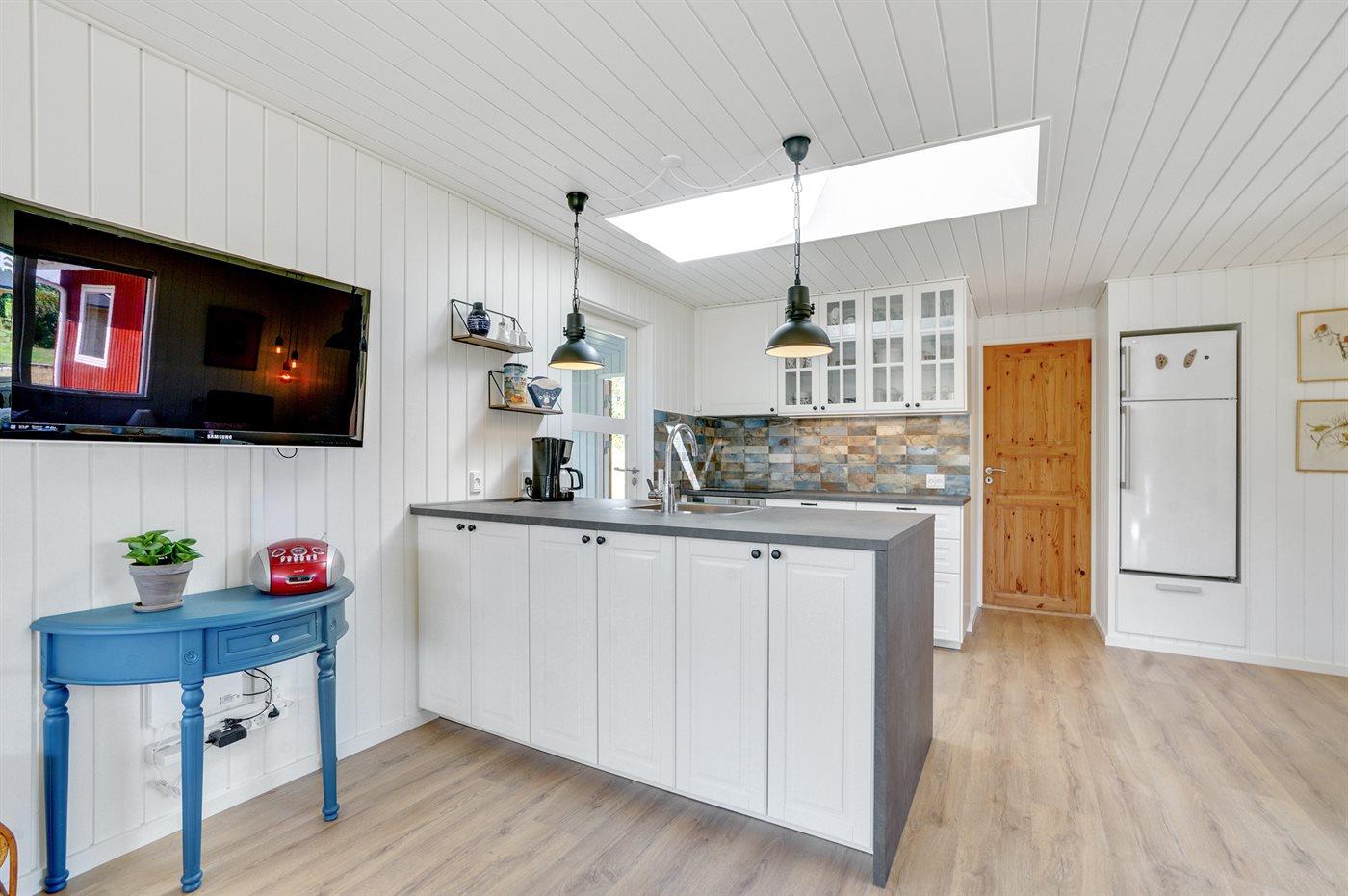 Køkkenet er udstyret med 1 køleskab. Der er 4 induktionskogeplader, varmluftovn, mikrobølgeovn samt opvaskemaskine.