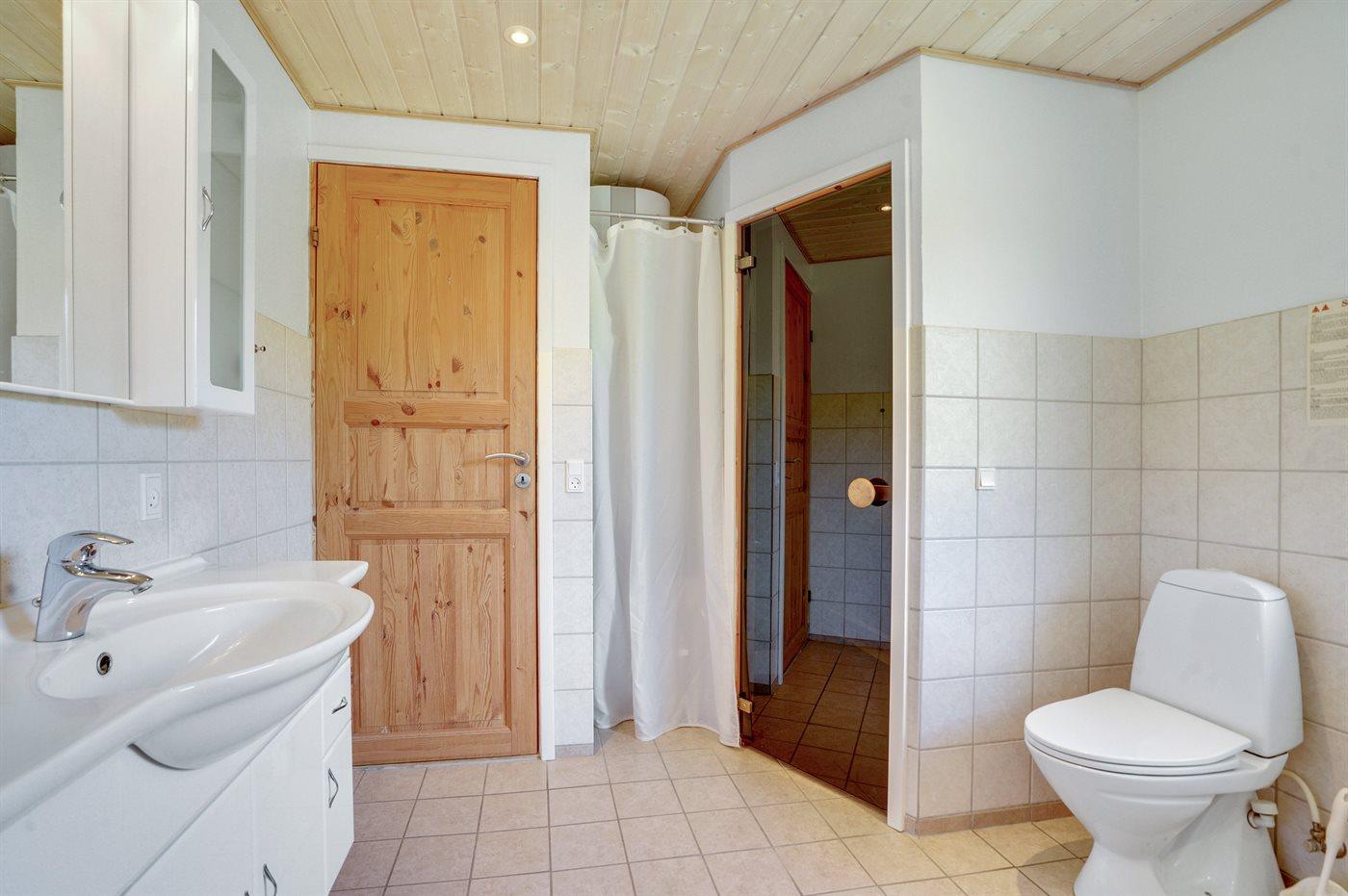 Der er 1 badeværelse med bruseniche og 1 toilet.. Der er gulvvarme på 1 badeværelse. I saunaen er der mulighed for afslapning.