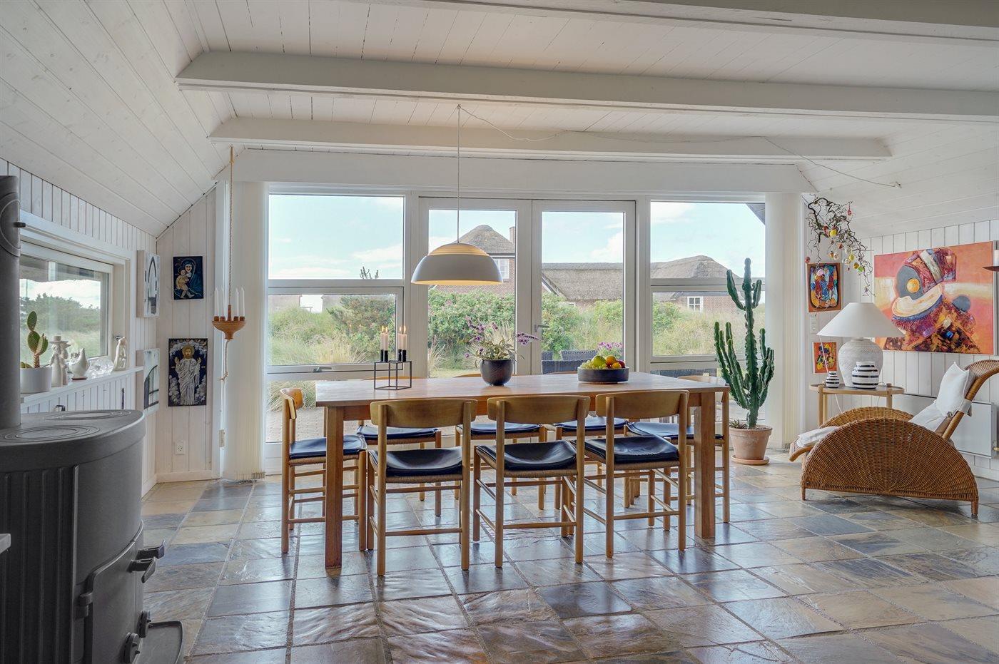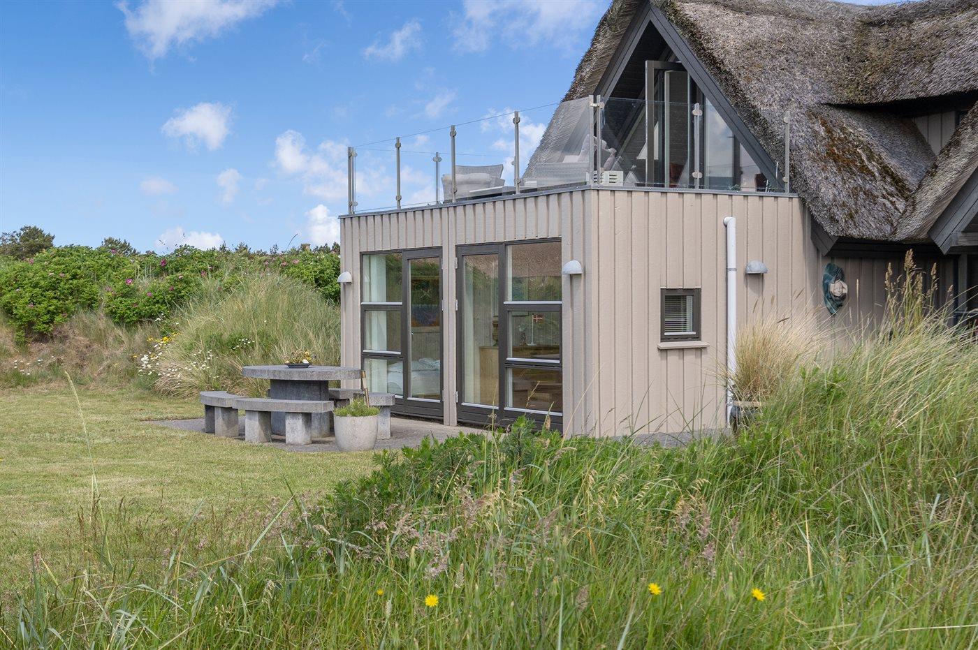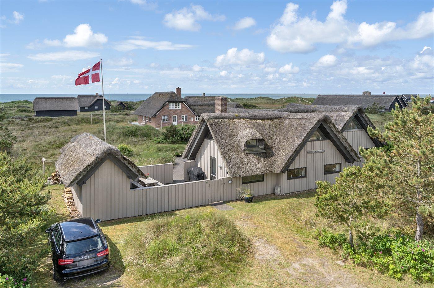 Dejligt sommerhus beliggende på en naturskøn grund. Stor terrasse med mange hyggekroge. I dette hus kan man finde fred og ro. Unik beliggenhed 100 meter fra Vesterhavet.