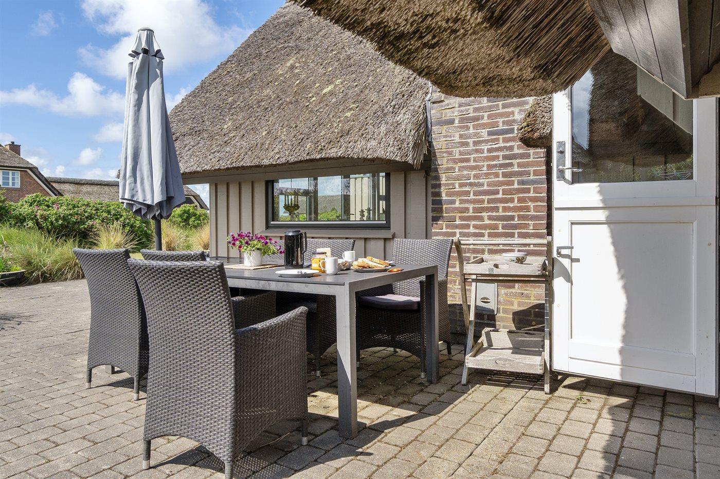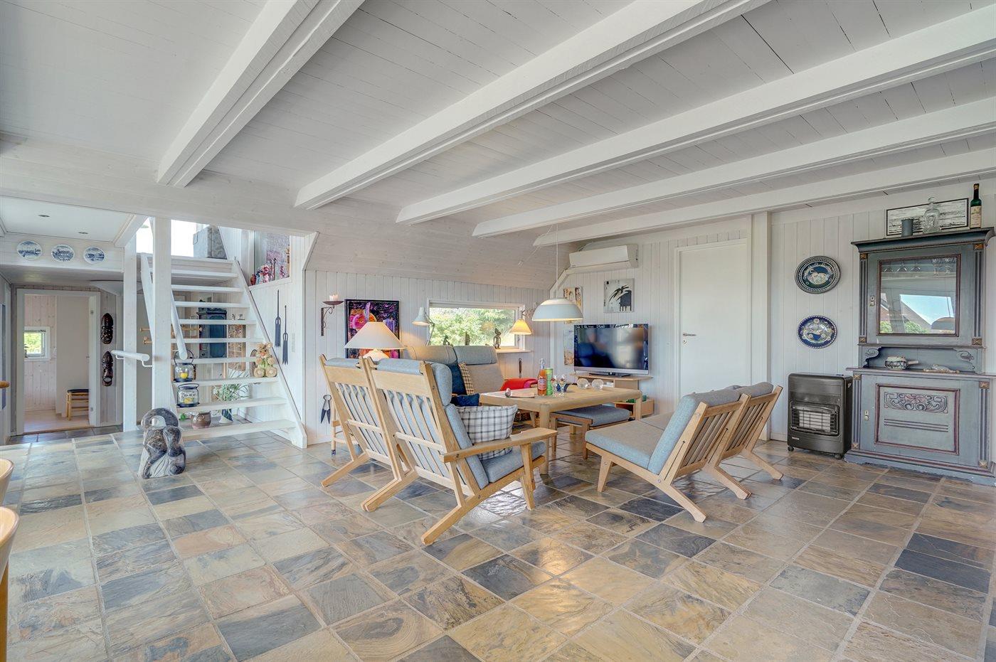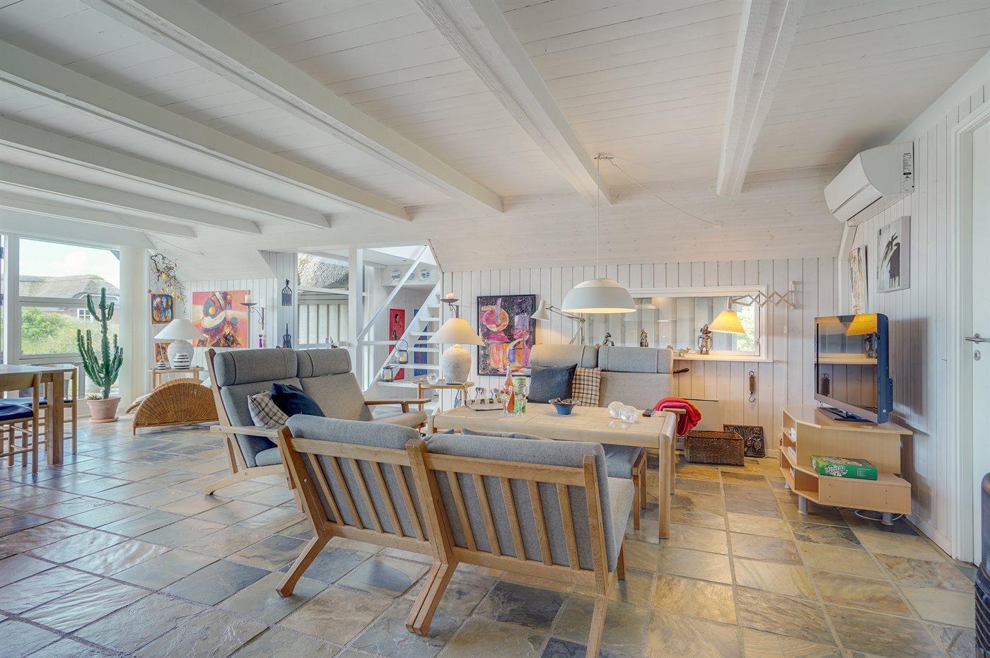 Dejligt sommerhus beliggende på en naturskøn grund. Stor terrasse med mange hyggekroge. I dette hus kan man finde fred og ro. Unik beliggenhed 100 meter fra Vesterhavet.