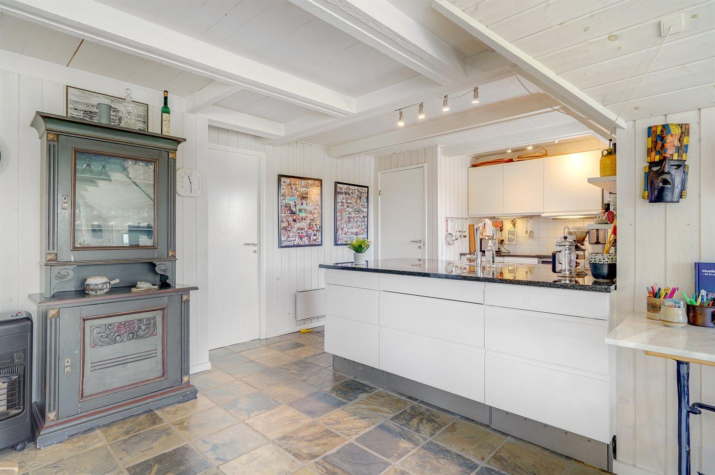 Køkkenet er udstyret med 2 køleskabe. Der er 4 induktionskogeplader, varmluftovn, mikrobølgeovn samt opvaskemaskine.