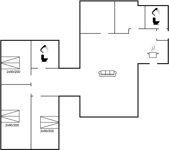 Der er i alt 3 soveværelser. Sovepladserne fordeler sig på: 6 sovepladser i dobbeltsenge.