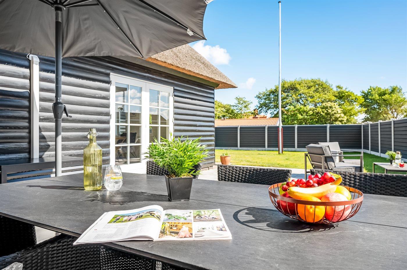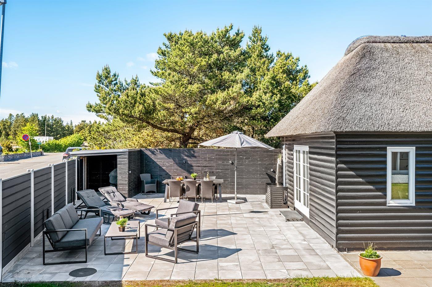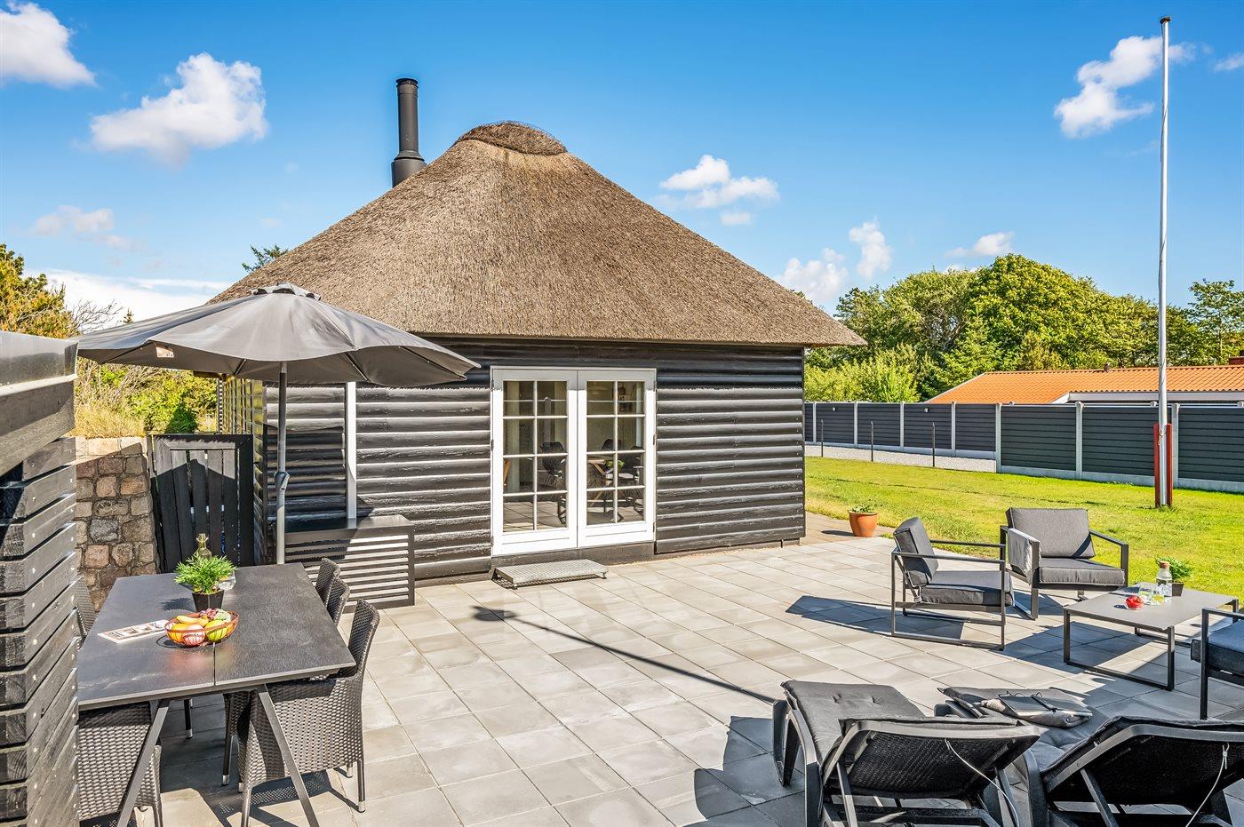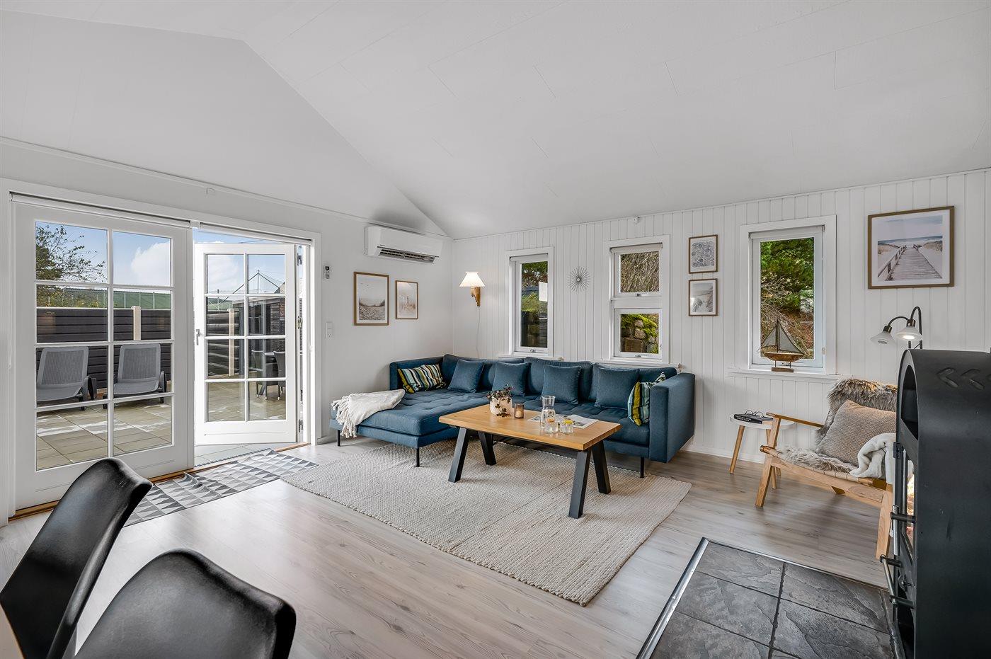 Lyst sommerhus i Blåvand med terrasse, brændeovn og nær centrum i rolige omgivelser.