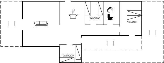 Der er i alt 3 soveværelser. Sovepladserne fordeler sig på: 2 sovepladser i dobbeltseng. 4 sovepladser i enkeltsenge.