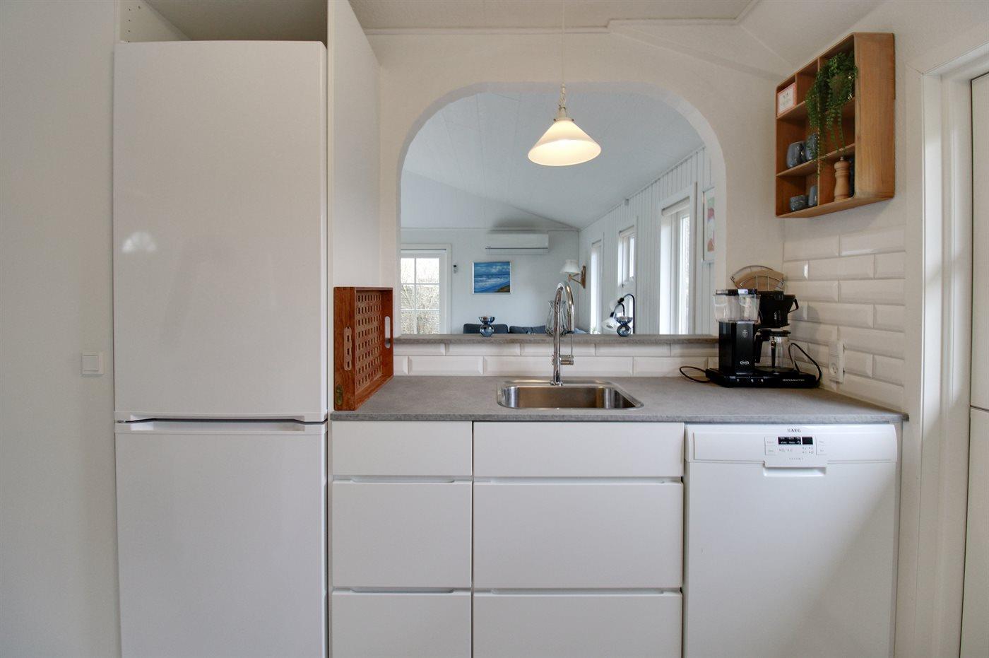 Køkkenet er udstyret med 1 køleskab. Der er 4 keramiske kogeplader, miniovn, mikrobølgeovn samt opvaskemaskine.