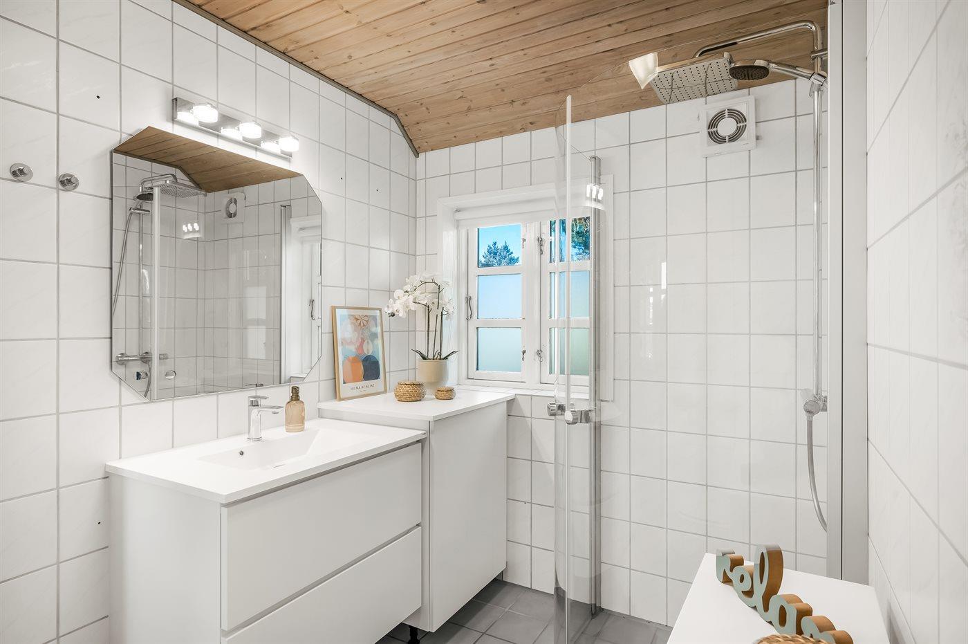 Der er 1 badeværelse med bruseniche og 1 toilet.