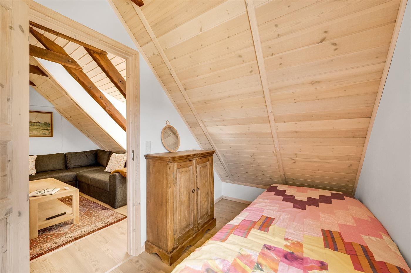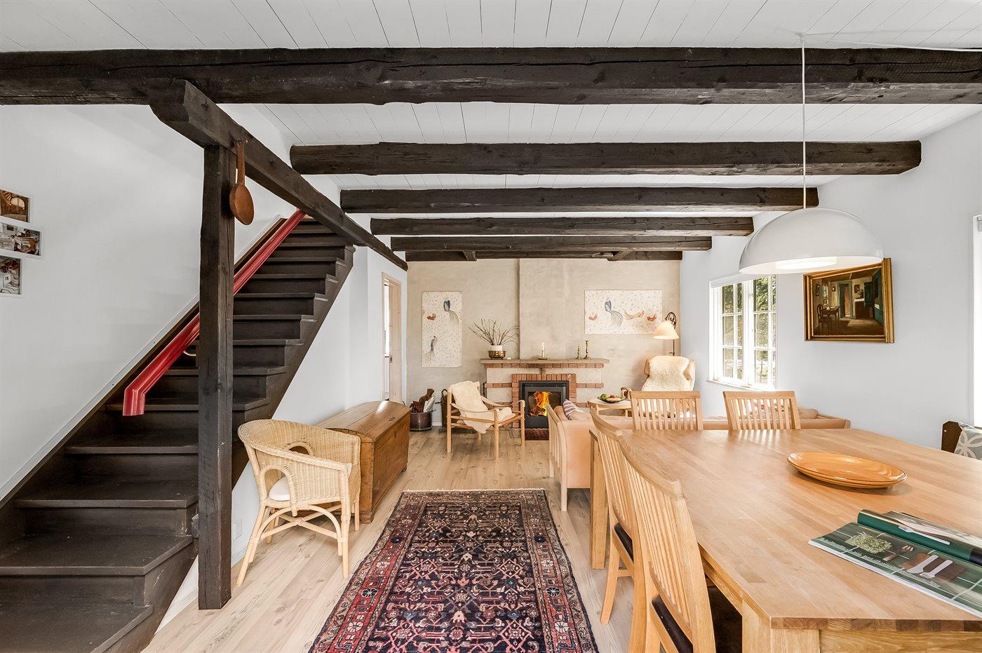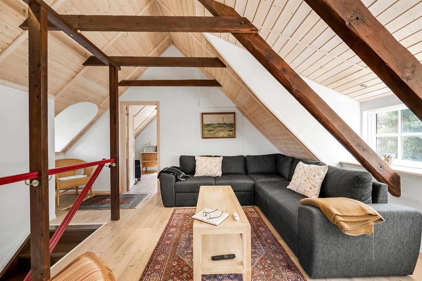 Huset er i 2 etager, og der er en hyggelig TV-stue på 1. sal samt soveværelser. Dejligt, stort køkken med spiseplads samt nyere badeværelse.