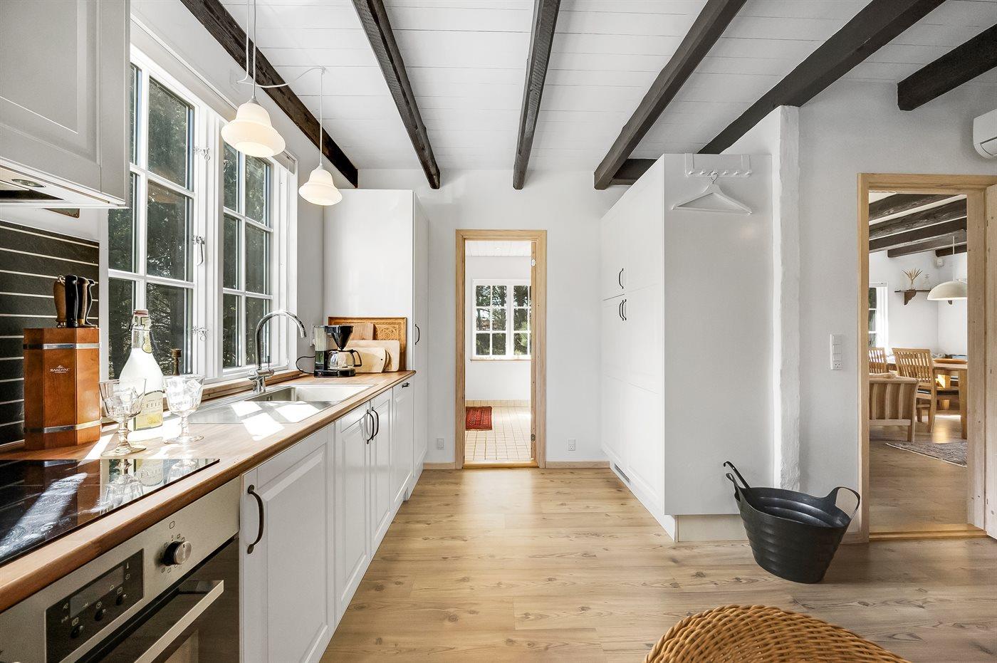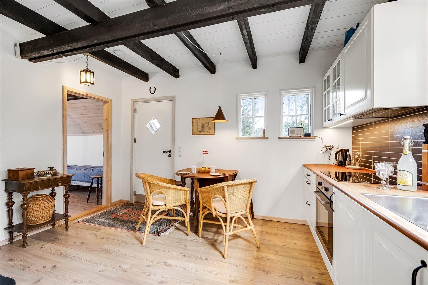 Køkkenet er udstyret med 1 køleskab. Der er 4 induktionskogeplader, varmluftovn, mikrobølgeovn samt opvaskemaskine.
