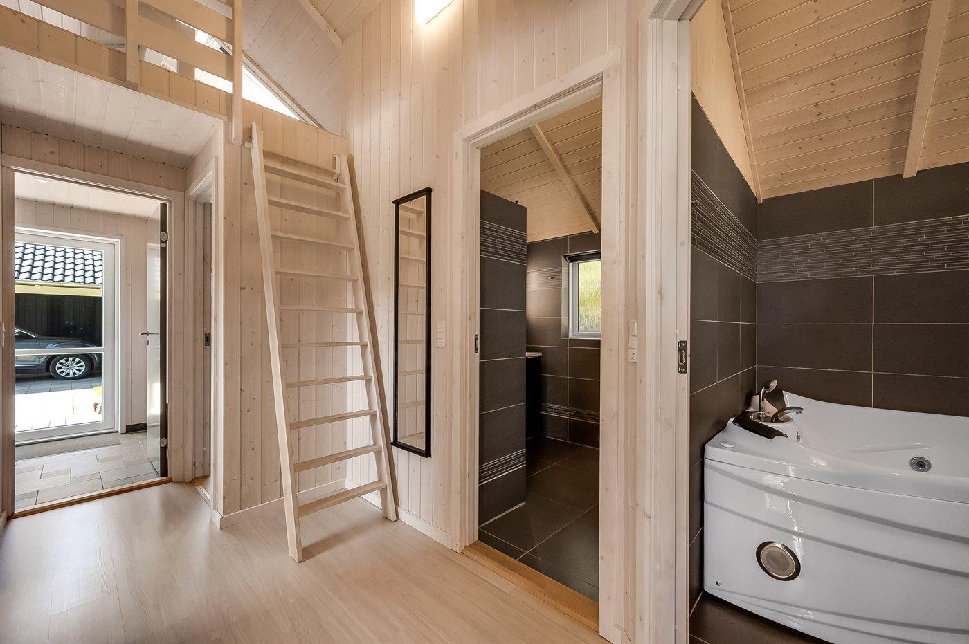 Der er 2 badeværelser med bruseniche og 2 toiletter. Der er gulvvarme på 2 badeværelser. I saunaen er der mulighed for afslapning.