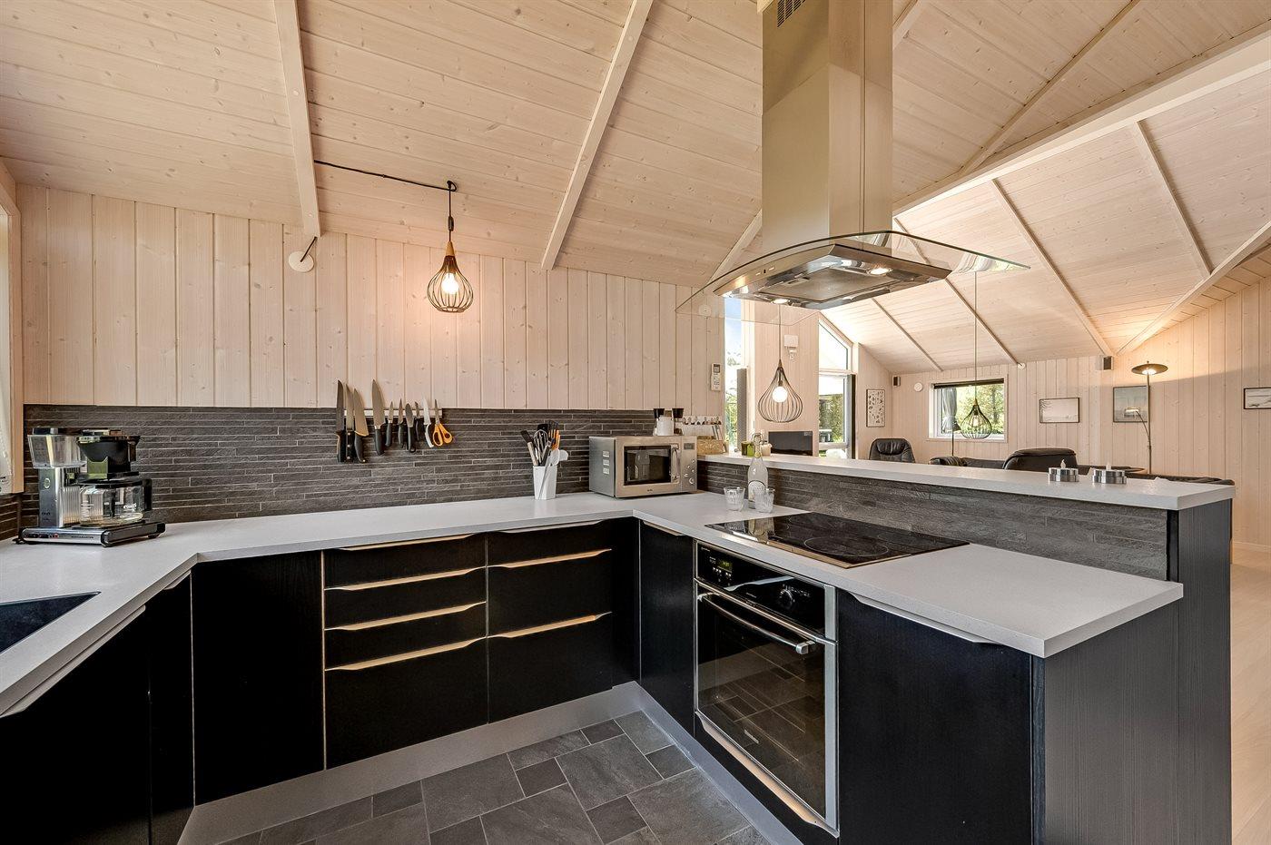 Køkkenet er udstyret med 1 køleskab. Der er 4 keramiske kogeplader, varmluftovn, mikrobølgeovn samt opvaskemaskine.