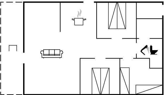Der er i alt 3 soveværelser. Sovepladserne fordeler sig på: 4 sovepladser i dobbeltsenge. 2 sovepladser i enkeltsenge.