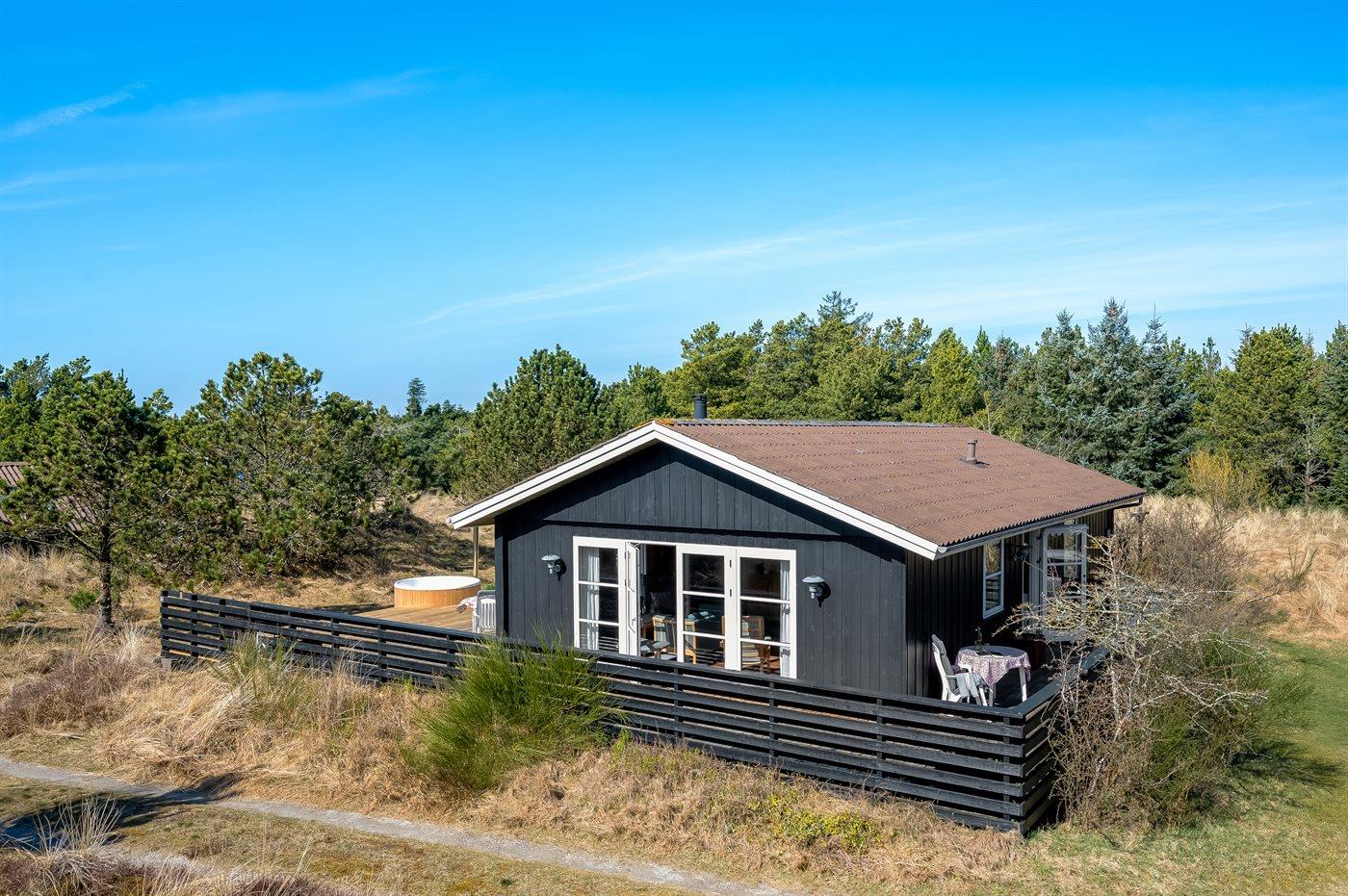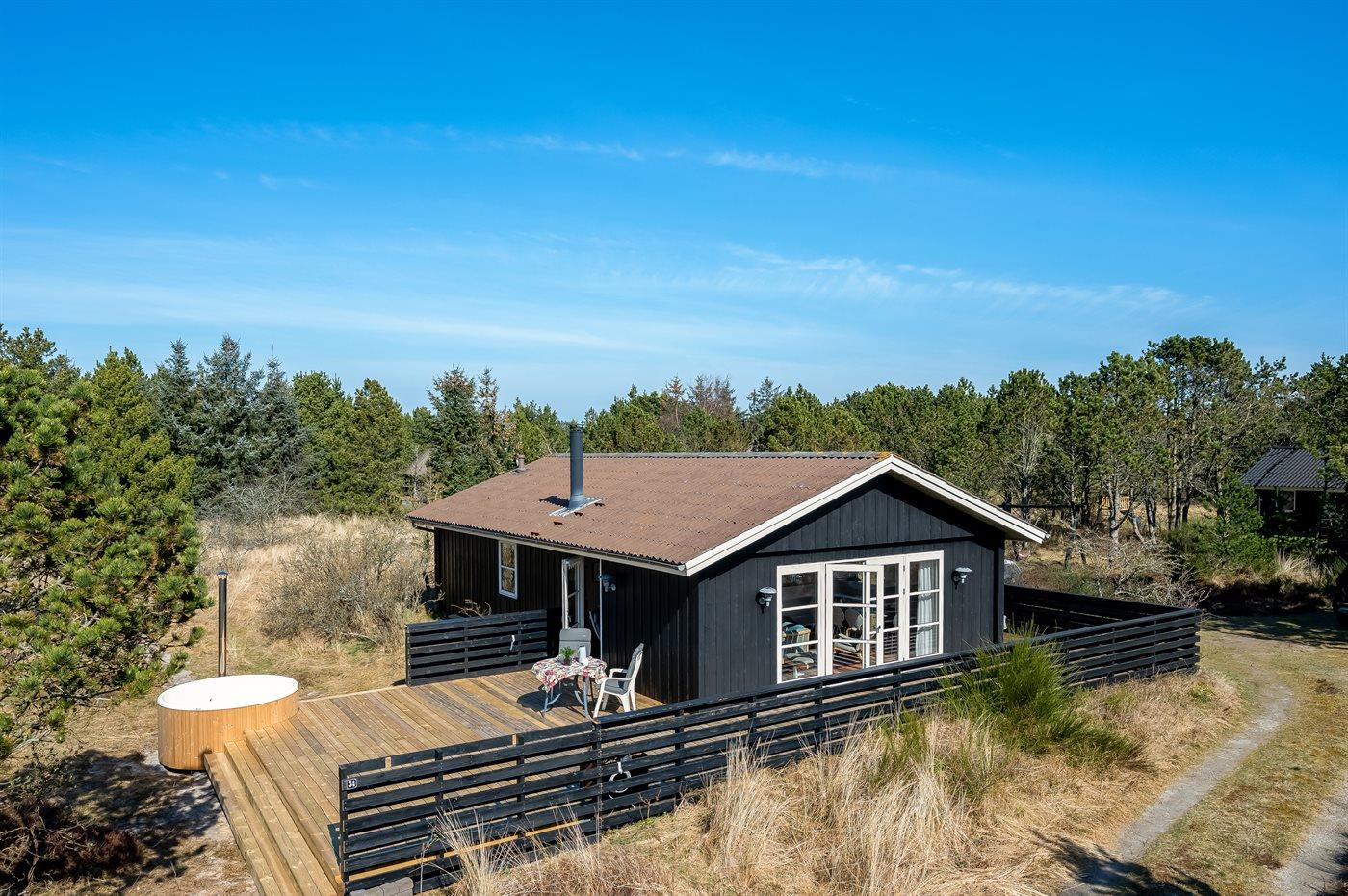 Hyggeligt sommerhus i Blåvand med solrig terrasse og vildmarkskar til afslapning.