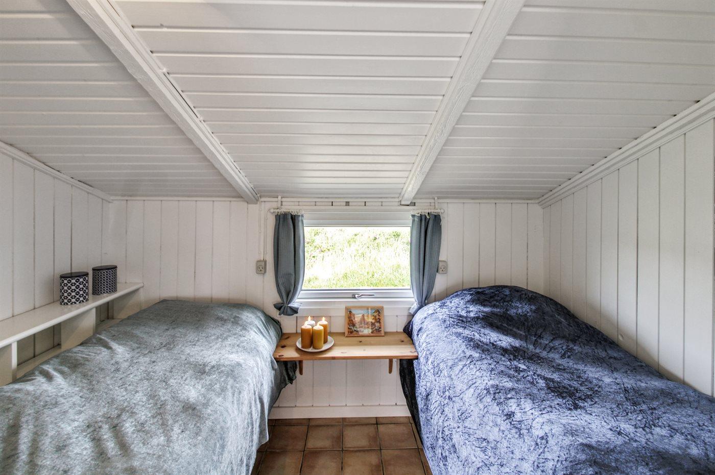Der er i alt 1 soveværelse. Sovepladserne fordeler sig på: 2 sovepladser i enkeltsenge.