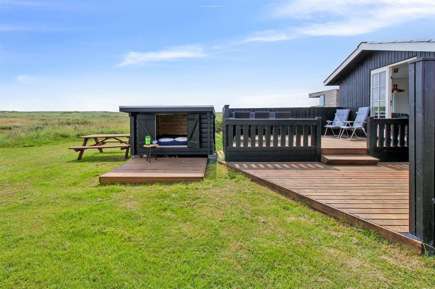 Ferieboligen er beliggende på en 26000 m² stor naturgrund. Der er 100 m til havet. Nærmeste forretning er beliggende i en afstand af 2100 m. Til ferieboligen hører åbent terrasseareal. Shelter. Parkering ved ferieboligen.