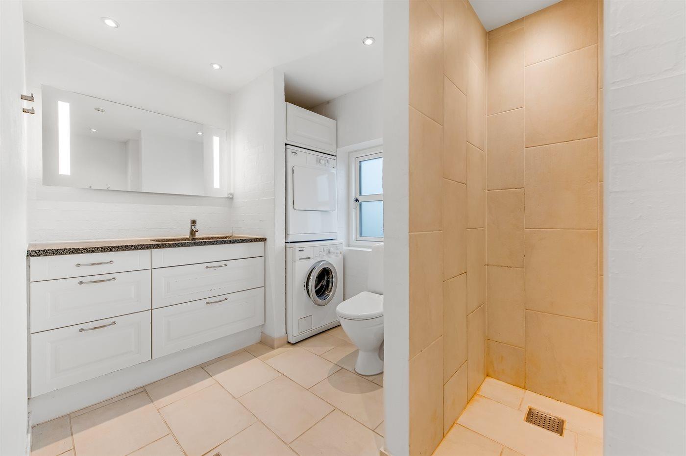 Der er 2 badeværelser med bruseniche og 3 toiletter, heraf 1 gæstetoilet. Der er gulvvarme på 2 badeværelser. Der er gulvvarme på gæstetoilettet. Dampkabine. I saunaen er der mulighed for afslapning.