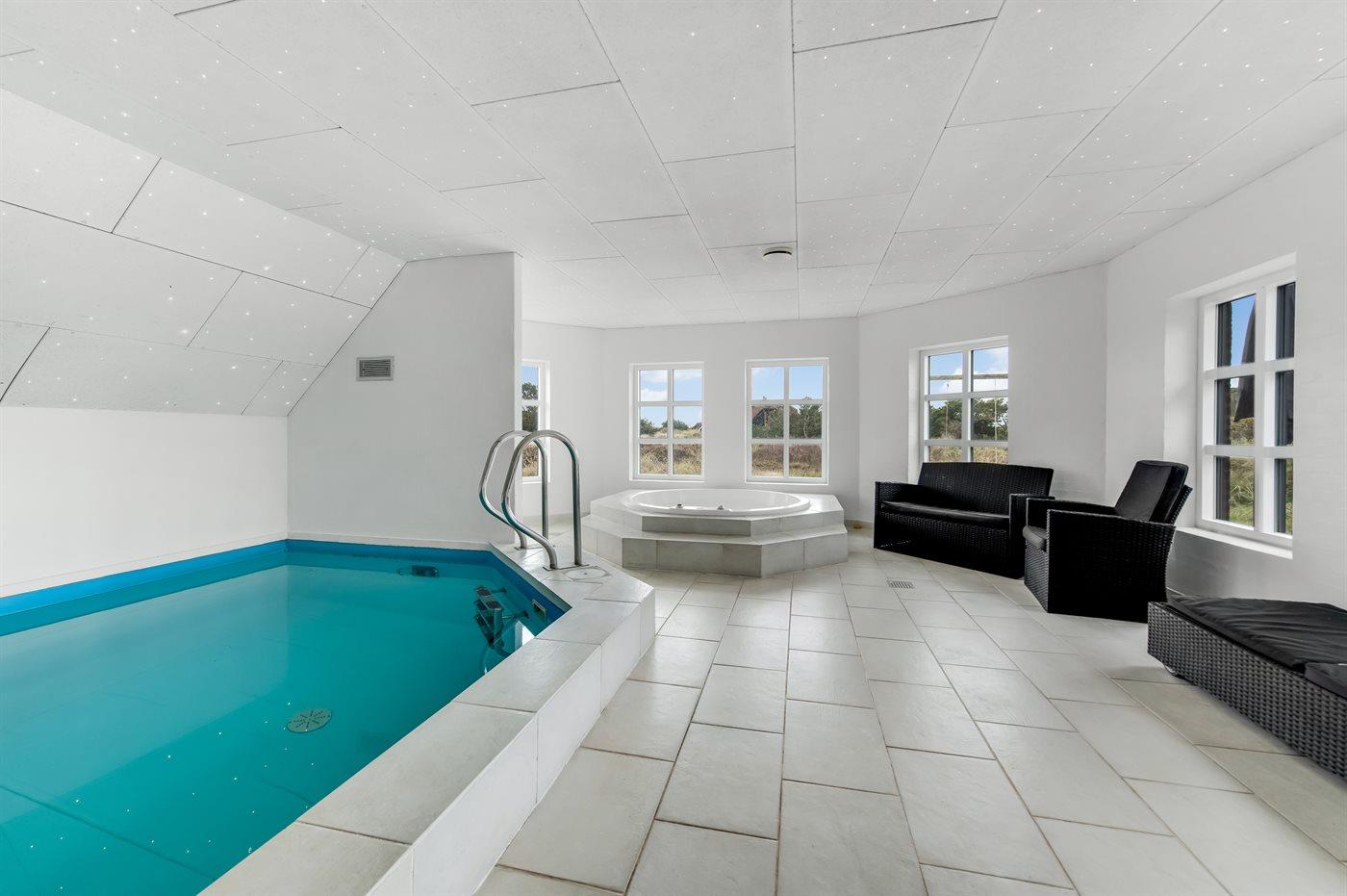 Dejligt sommerhus med en skøn wellnessafdeling med swimmingpool, spa og sauna. Huset ligger kun 300 meter fra stranden og har plads til 10 personer.