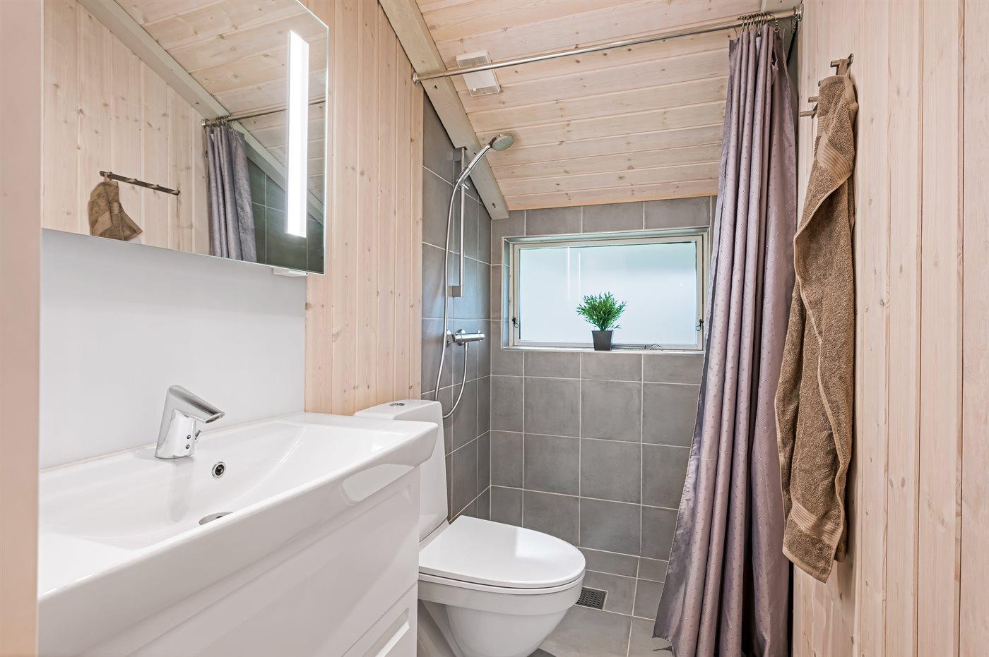 Der er 2 badeværelser med bruseniche og 2 toiletter. Der er gulvvarme på 2 badeværelser.