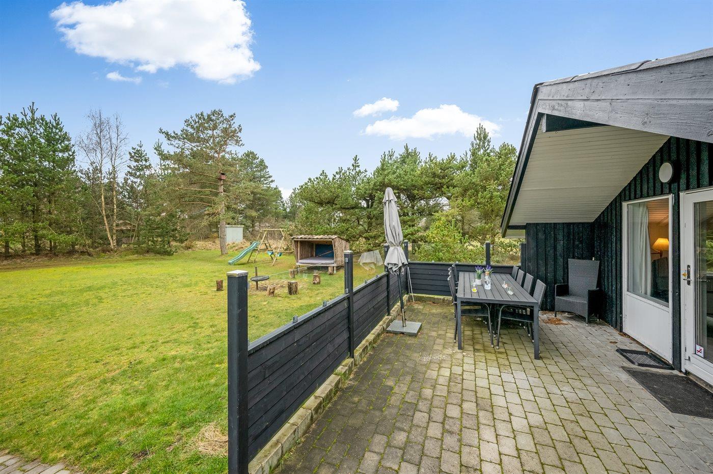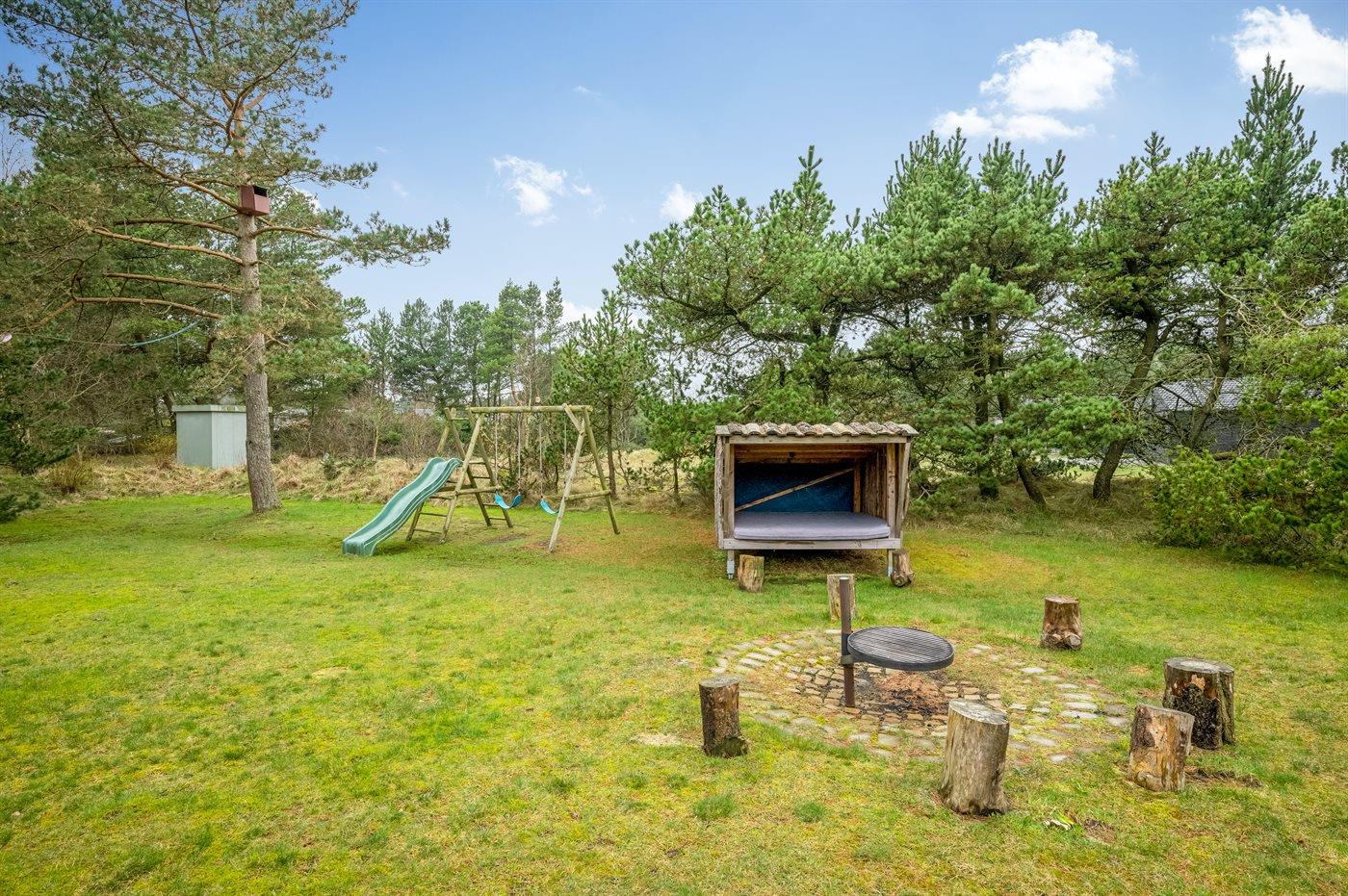 Et skønt wellness-sommerhus i Blåvand beliggende i rolige omgivelser. Man finder huset på en stor grund, hvor der er gode muligheder for udendørs aktiviteter, når vejret tillader det – der findes bl.a. fodboldmål og en lille legeplads til de små feriegæster. Ønsker man at overnatte i det fri findes der shelter med bålplads.