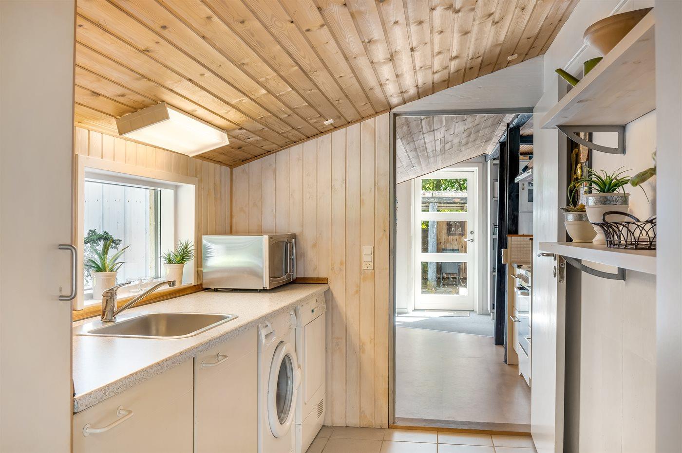 Køkkenet er udstyret med 1 køleskab. Der er 4 keramiske kogeplader, varmluftovn, mikrobølgeovn samt opvaskemaskine.
