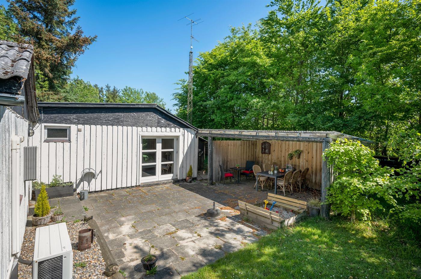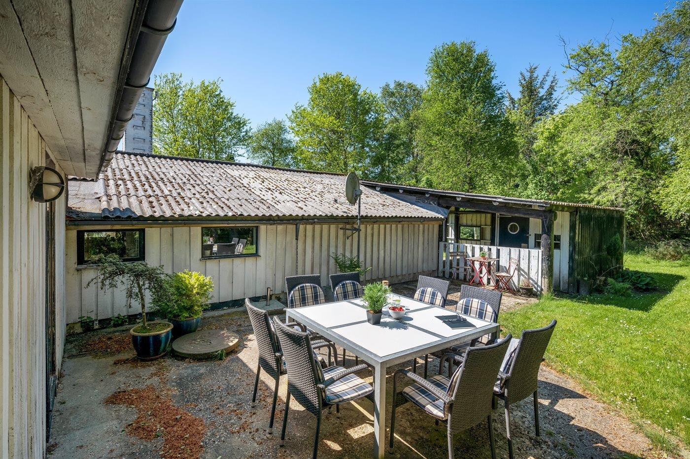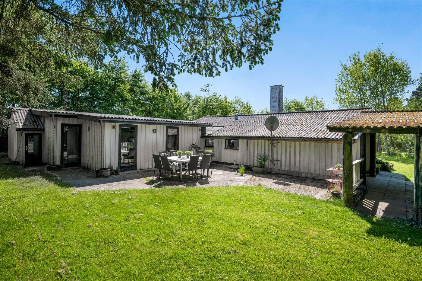 Ferieboligen er beliggende på en 1500 m² stor naturgrund. Der er 800 m til havet. Nærmeste forretning er beliggende i en afstand af 300 m. Til ferieboligen hører åbent terrasseareal. Desuden er der overdækket terrasse. Der er redskabsrum. Gynge. Sandkasse. Rutchebane. Grill til rådighed. Der er carport til rådighed. Parkering ved ferieboligen.