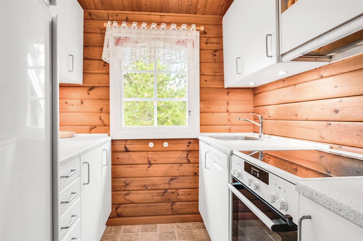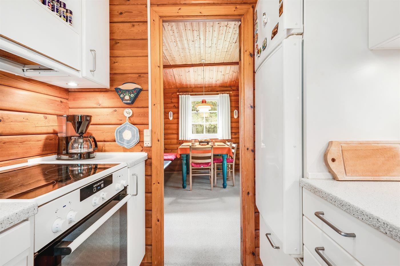 Køkkenet er udstyret med 1 køleskab. Der er 4 keramiske kogeplader, varmluftovn samt opvaskemaskine.
