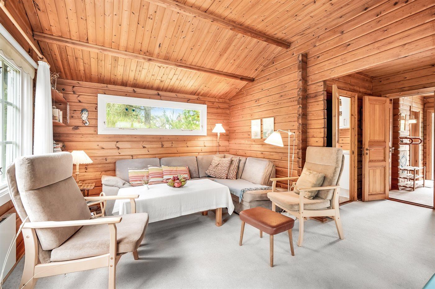 Sommerhuset udstråler nostalgisk karakter og er smukt placeret i naturskønne omgivelser.