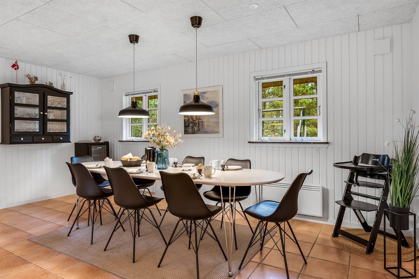 Sommerhuset egner sig til 9 personer. Ferieboligen er på 210 m², er i 2 plan, og er bygget i 1988. I 2020 gennemgik ferieboligen en renovering. Det er tilladt at medbringe 2 husdyr. Ferieboligen er udstyret med 1 energibesparende luft til luft varmepumpe. Ferieboligen har vaskemaskine. Tørretumbler. Frysekapacitet på 60 liter. Der er desuden brændeovn. Til de små er der 1 stk. barnestol. Puslebord.