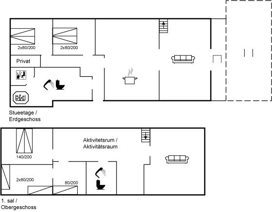 Der er i alt 4 soveværelser. Sovepladserne fordeler sig på: 6 sovepladser i dobbeltsenge. 3 sovepladser i enkeltsenge.