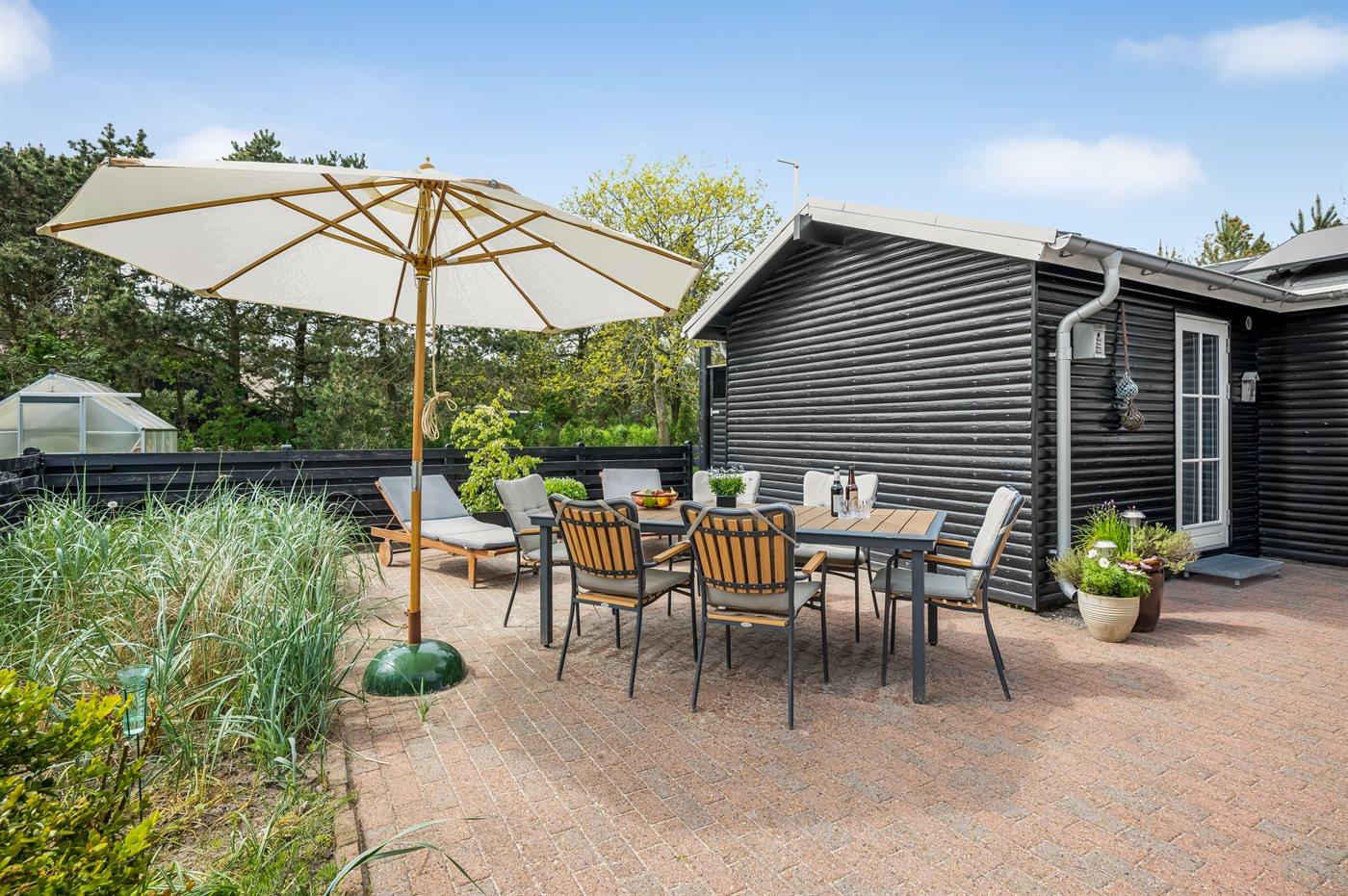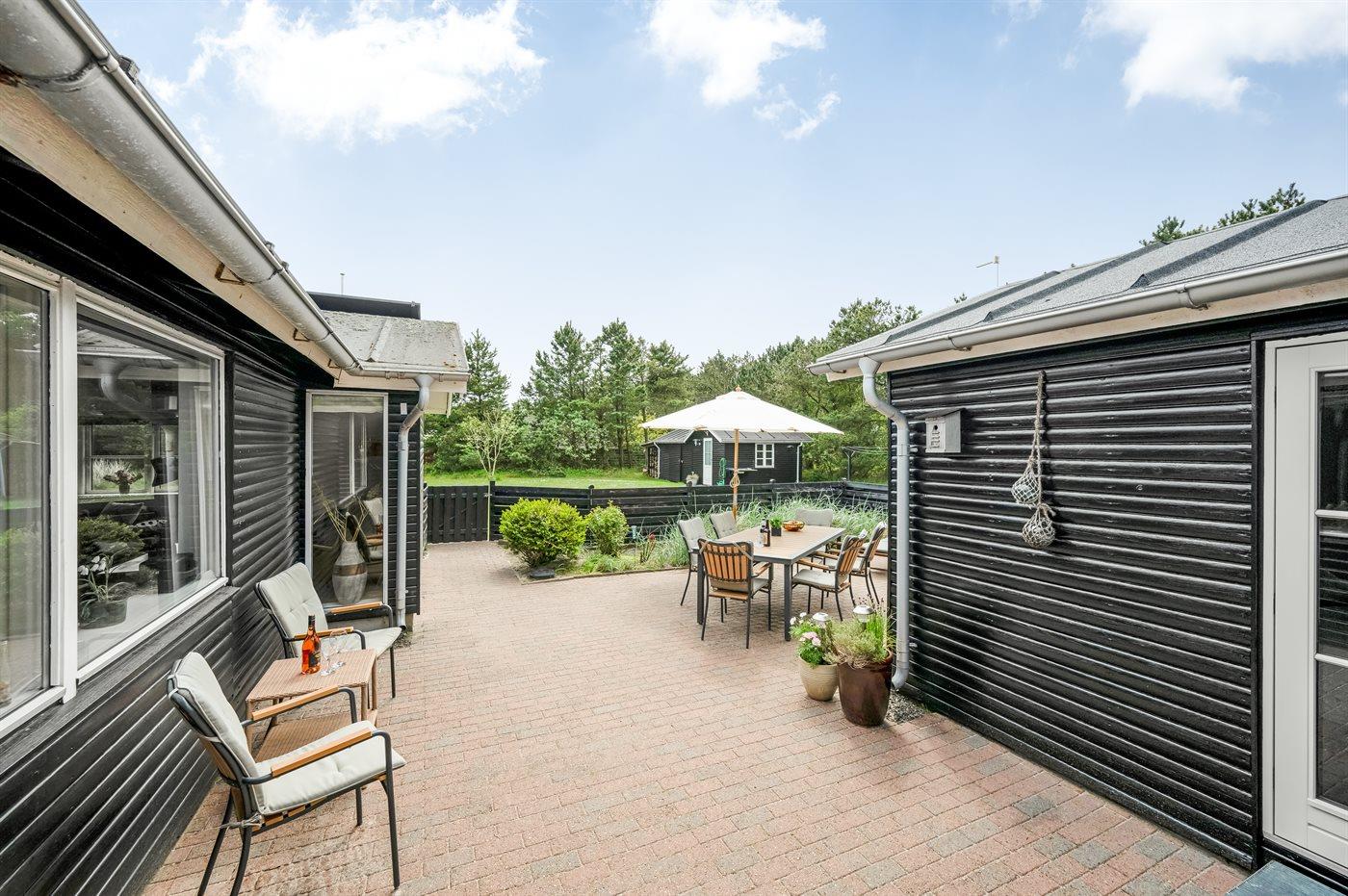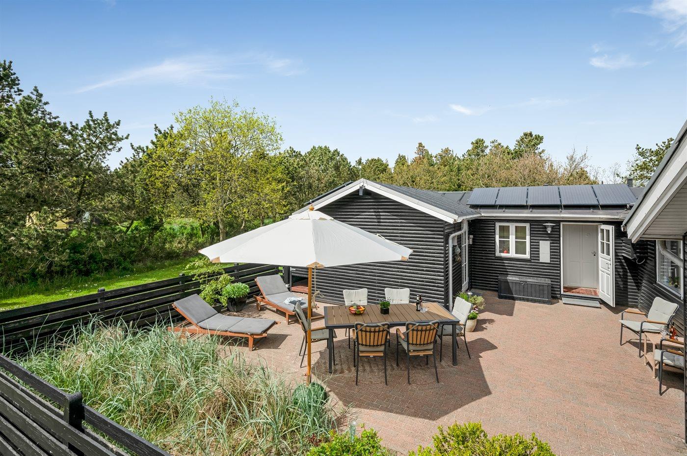 Ferieboligen er beliggende på en 1273 m² stor naturgrund. Der er 350 m til havet. Nærmeste forretning er beliggende i en afstand af 600 m. Til ferieboligen hører åbent terrasseareal. Der er redskabsrum. Udendørs bruser. Grill til rådighed. Der er installeret stik til opladning af elbil. Type 2 stik. Med 11 kW ladeeffekt. Parkering ved ferieboligen.