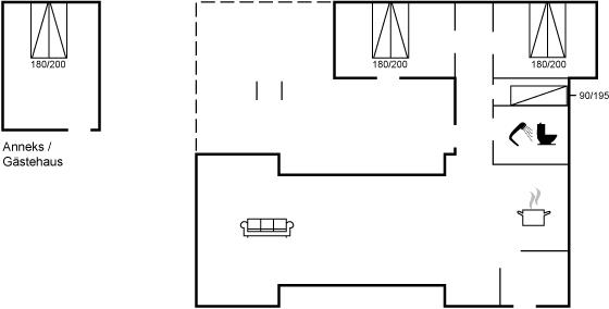 Der er i alt 4 soveværelser. Sovepladserne fordeler sig på: 6 sovepladser i dobbeltsenge. 1 soveplads i enkeltseng. 2 af disse sovepladser befinder sig i anneks.