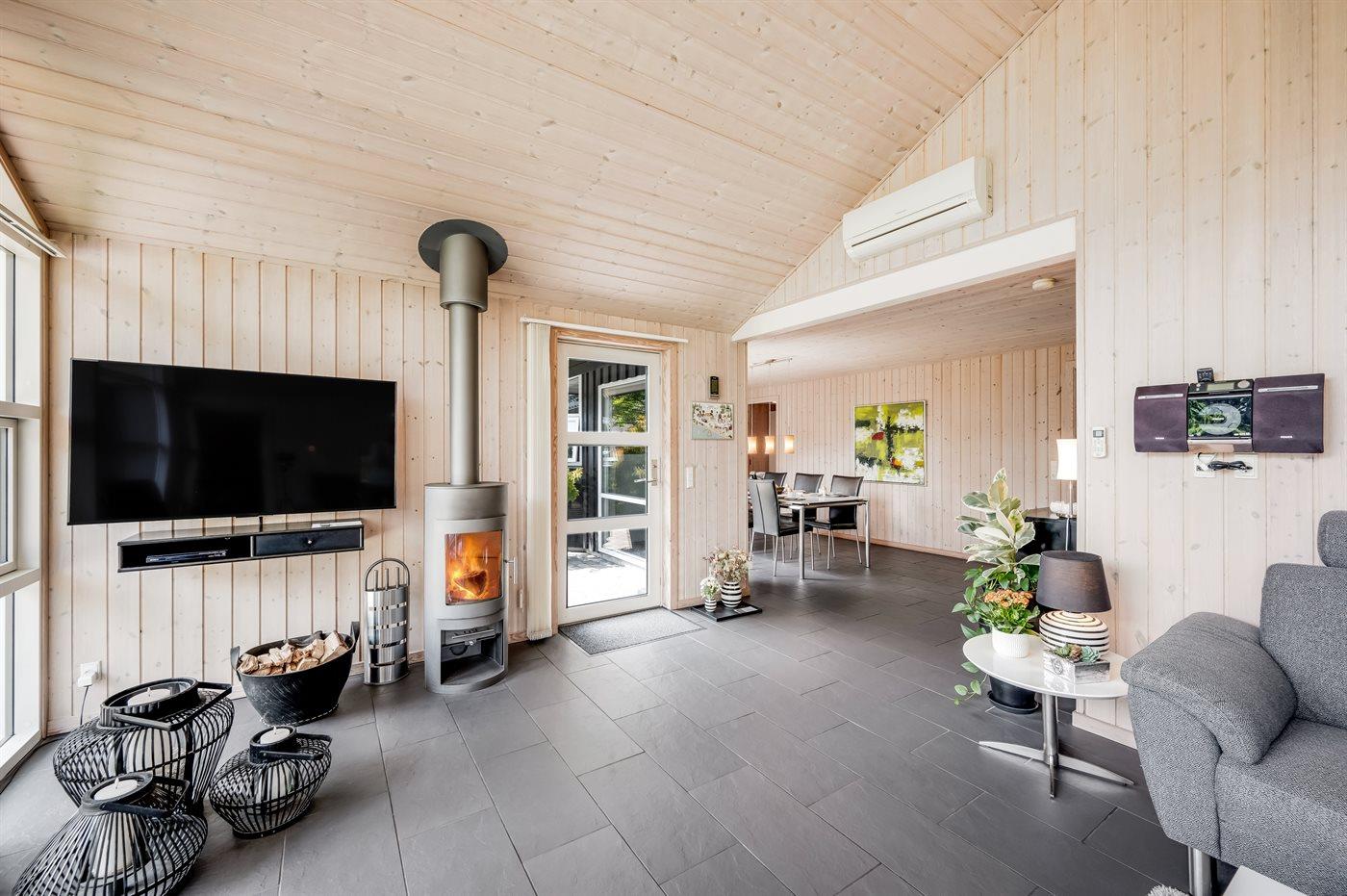 Sommerhuset på 116 m2 er bygget i 2009 og egner sig til 8 personer. Det er ikke tilladt at medbringe husdyr. Ferieboligen er udstyret med energisparende luft til luft varmepumpe. Der er solvarme og gulvvarme i både stue, køkken, entré, alkove og badeværelser. I stuen er der brændeovn. Ferieboligen råder både over vaskemaskine og tørretumbler.